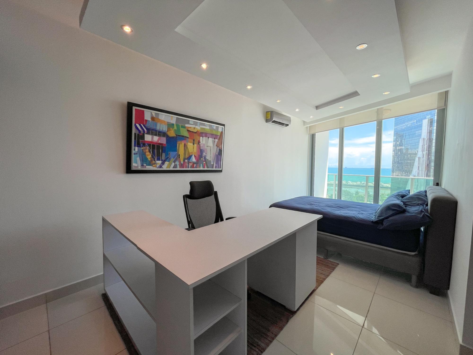 Se Alquila apartamento en Allure at The Park – Bella Vista Este moderno apartamento de 159 m² ofrece una amplia sala llena de luz natural, balcón con vista al mar y al parque, cocina abierta equipada, 2 habitaciones, 2.5 baños y 2 estacionamientos, combinando comodidad y estilo de vida urbano. Los espacios están cuidadosamente distribuidos, creando un ambiente acogedor y funcional en cada rincón. El edificio cuenta con amenidades de primer nivel: piscina, gimnasio totalmente equipado, sauna, cancha de squash, sala de eventos y áreas de entretenimiento, todo dentro de un entorno seguro y exclusivo para ti y tu familia. Vivir en Allure es disfrutar de confort, elegancia y comunidad, en el corazón de Bella Vista.