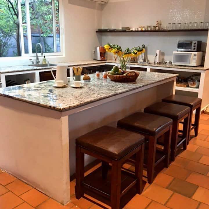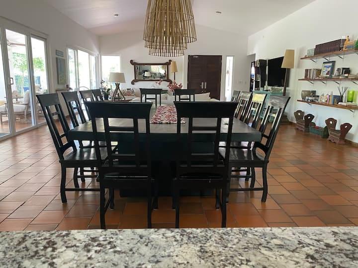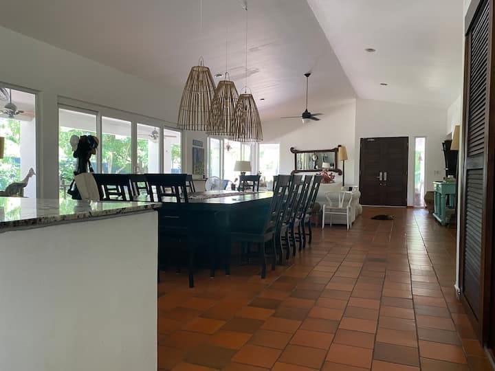 ¡Tu refugio de playa te espera! Alquila esta increíble propiedad por solo $5,000 al mes. Generales de la propiedad: Tamaño del terreno: 1,454.03 m² Tamaño de la casa: 500 m² Número de habitaciones: 5 dormitorios Número de baños: 4 baños completos Renta mensual: $4,000.00 Acceso a los huéspedes: Acceso total a todas las áreas del alojamiento, tanto interiores como exteriores. Características destacadas: Cocina abierta: Diseñada para reuniones familiares y eventos sociales, el corazón de la casa, con espacio suficiente para una mesa de comedor de 12 asientos. Decoración: Estilo chic hispano de California, proporcionando un ambiente cálido y acogedor. Áreas al aire libre: Amplias terrazas exteriores que se fusionan con un extenso patio trasero, ofreciendo un ambiente ideal para disfrutar de la tranquilidad costera. Paisajismo: Árboles frutales maduros, incluyendo mangos y estrellas, que no solo embellecen el paisaje, sino que permiten disfrutar de frutos frescos. Cuidado del jardín: Un jardinero dedicado que mantiene el lugar impecable, mejorando la experiencia del entorno natural.