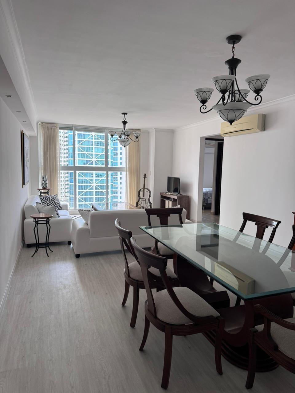 Alquiler de Apartamento Amueblado en PH Pacific Blue – Ciudad de Panamá Punta Pacífica Disfruta de la comodidad y el estilo en este moderno apartamento totalmente amueblado, ubicado en el exclusivo P.H. Pacific Blue. Características del apartamento: 2 recámaras con closets y camas. 2 baños completos. Sala y comedor con mobiliario moderno. Cocina equipada con línea blanca. 2 estacionamiento privado. Amenidades del PH: Piscina. Área social para eventos. Seguridad 24/7. Lobby elegante. Ubicación privilegiada: Cerca de supermercados, restaurantes, centros comerciales y vías principales. Precio de alquiler: $1,500.00 Contáctanos hoy mismo para coordinar una visita y enamorarte de tu nuevo hogar.