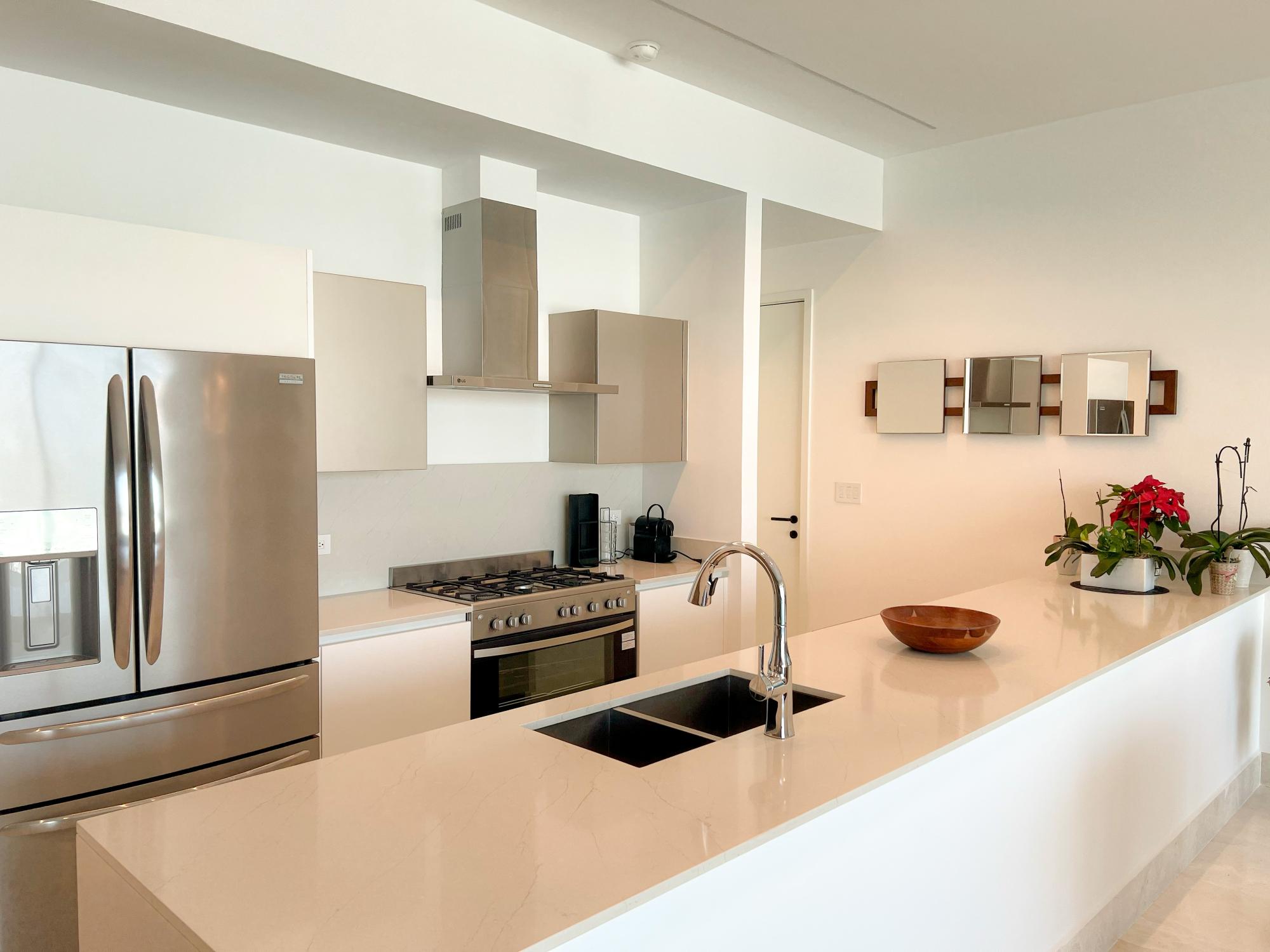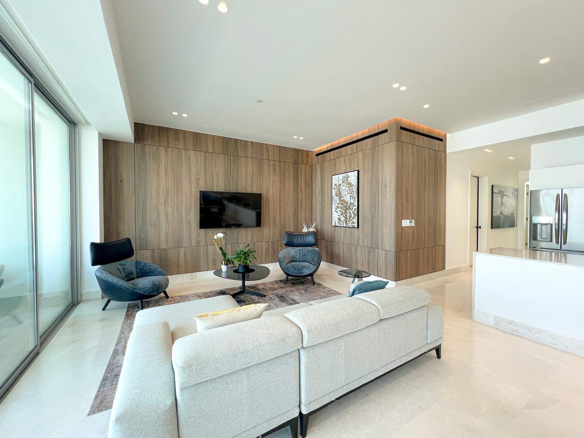 Adopte el estilo de vida isleño con este espacioso apartamento de 180 m² en Beach Club Residences, ubicado en las serenas Ocean Reef Islands. Ubicada en el nivel 400, esta casa completamente amueblada presenta un diseño de concepto abierto, que conecta a la perfección las áreas de cocina, comedor y sala de estar con una gran terraza que ofrece impresionantes vistas al puerto deportivo e inunda el espacio con luz natural, perfecta tanto para la relajación como para el entretenimiento. Con 2 dormitorios y 2,5 baños, cada rincón de este apartamento está diseñado con elegancia moderna, con acabados de primera calidad y accesorios de alta calidad en todas partes. Salga y disfrute del entorno tranquilo de su propia isla privada, con acceso a comodidades de primer nivel, como piscina, área de barbacoa, terraza panorámica y gimnasio de última generación. Vivir en Beach Club Residences significa experimentar lo mejor de ambos mundos: la atmósfera pacífica de la isla combinada con la comodidad de estar a solo minutos de la ciudad de Panamá. Ya sea que se relaje en su terraza, disfrute de la piscina frente al mar o explore la vibrante ciudad, este apartamento ofrece un estilo de vida incomparable que combina a la perfección la comodidad, el lujo y la belleza natural.
