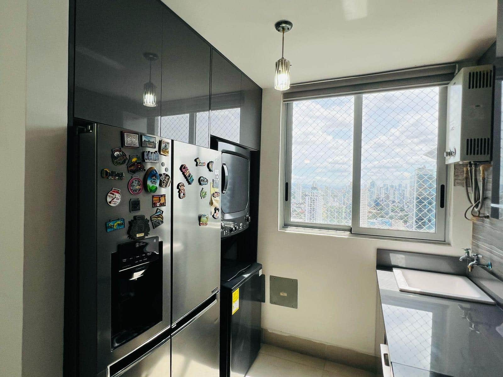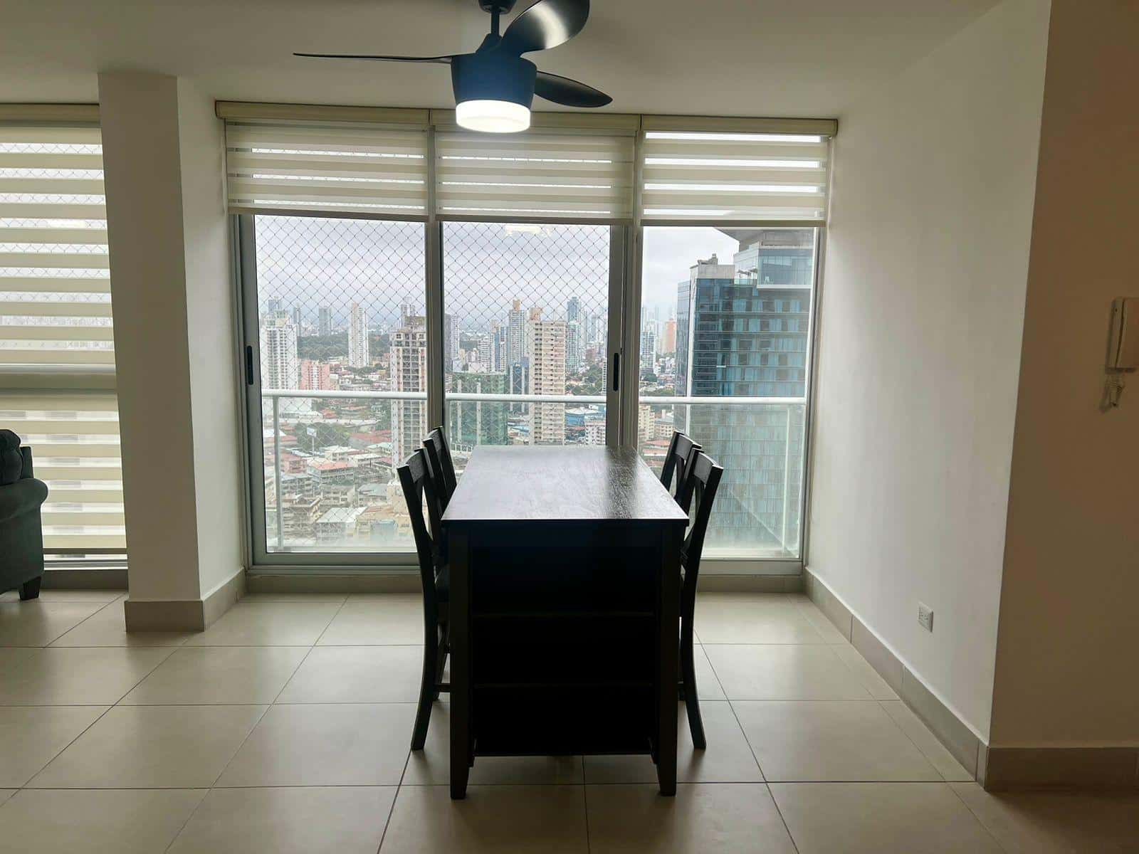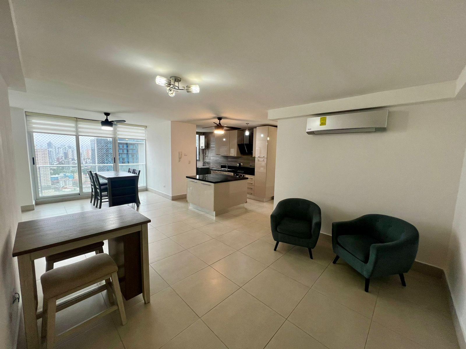 Alquila en Obarrio y disfruta de una ubicación privilegiada, vistas al mar y a la ciudad, y la comodidad de un apartamento amoblado, listo para mudarte. Con 110 m², ofrece 2 habitaciones, 3 baños, den ideal para oficina, cocina abierta y un estacionamiento. Ubicado en piso alto, con excelente iluminación y tranquilidad. El edificio cuenta con piscina, gimnasio, parque infantil, salón de fiestas, seguridad 24/7, gas y planta eléctrica total. A pasos de Calle 50, restaurantes, farmacias y comercios. Ideal para profesionales o parejas que valoran ubicación, estilo y comodidad. Disponible ya.