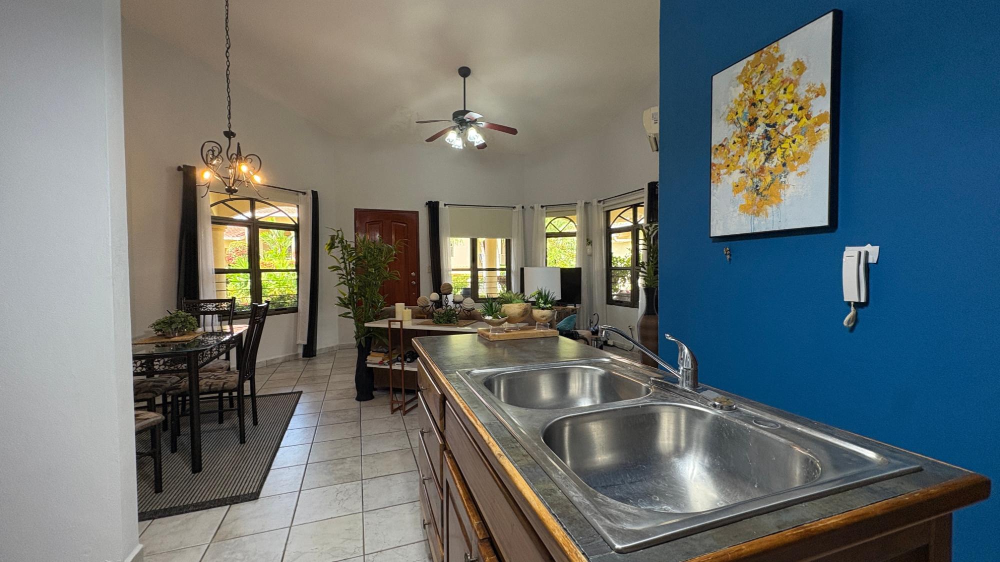 Este apartamento se encuentra en la comunidad residencial privada Cuesta del Sol Fase 2 en Altos de Morazán, David, Chiriquí. Con una superficie construida de 85.74 m², la unidad cuenta con sala, cocina con comedor, un dormitorio y un baño. También incluye una plaza de aparcamiento. El diseño optimiza el espacio, ofreciendo comodidad para vivir a tiempo completo o como inversión para alquilar. Características de la comunidad: Cuesta del Sol es un desarrollo residencial consolidado en David, compuesto por 21 unidades distribuidas alrededor de patios ajardinados. La propiedad ofrece jardines paisajísticos y acceso a una piscina comunitaria, un lugar acogedor para relajarse o pasar tiempo con los vecinos. El ambiente de la comunidad es tranquilo, y la mayoría de los residentes son jubilados o están cerca de la edad de jubilación. La ubicación es uno de los puntos fuertes de Cuesta del Sol. El condominio se encuentra a poca distancia a pie del supermercado Romero y del centro de David, lo que proporciona fácil acceso a centros comerciales, centros médicos, restaurantes y al Aeropuerto Internacional Enrique Malek. Hay taxis disponibles justo afuera de la entrada de la comunidad, lo que simplifica el transporte diario. La propiedad también se encuentra en carreteras pavimentadas, a solo 5 minutos del centro de David.