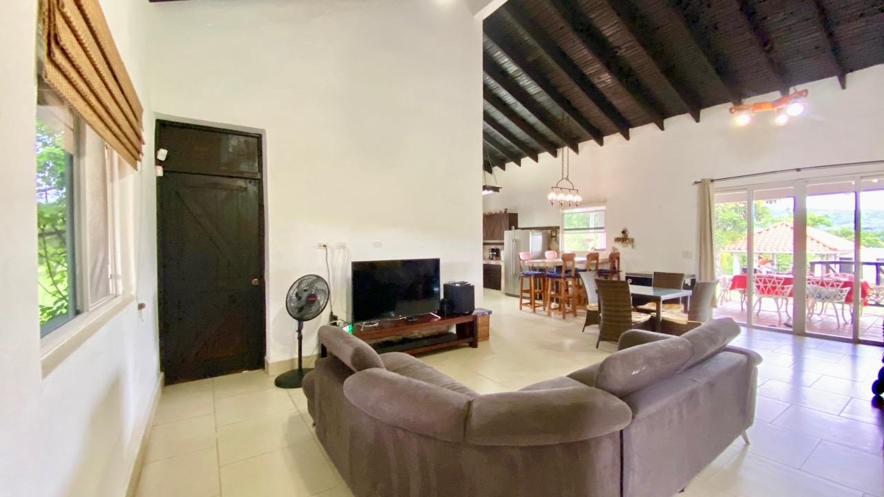 Casa de tres dormitorios con sistema completo de energía solar, una linda piscina y un amplio terreno ajardinado, a solo 10 minutos de Coronado. Esta casa de tres dormitorios con energía solar se encuentra en el complejo Las Quintas de Cabuya, camino al pueblo de Cabuya. Es un complejo muy acogedor con aproximadamente 20 casas, rodeado de montañas. Ofrece vistas preciosas y una agradable brisa durante todo el año. Tiene una pequeña área social con piscina y bohíos de penca. LA CASA Esta casa de tres dormitorios con energía solar tiene un estilo colonial. Los techos son muy altos y hechos de madera maciza oscura. La construcción data de 2014. Con una superficie aproximada de 200m2 y 3400m2 de jardín con abundantes árboles frutales, esta propiedad goza de una ubicación privilegiada, al final de una calle sin salida. • Amplio salón con acceso a la terraza. • Cocina abierta, amueblada y equipada, con comedor. • Primer dormitorio con baño privado y entrepiso, aire acondicionado y ventilador de techo. • Segundo dormitorio, también con baño privado, aire acondicionado y ventilador de techo. • Tercer dormitorio, aire acondicionado y ventilador de techo. • Baño independiente con sanitario. • Terraza cubierta con vistas al patio trasero, la piscina y las montañas circundantes. • Baño exterior, lateral a la terraza. • Piscina y amplio bohío con cocina exterior, horno de ladrillo, baño completo y amplio almacén. • Lavandería. • Deposito de jardín. • Mirador de 60 metros cuadrados con agua y electricidad. • Amplias plazas de aparcamiento. • Contenedor refrigerado y aislado de 20 pies con sistema solar, baterías y controles. El jardín de 3400 metros cuadrados está completamente ajardinado, con árboles frutales (papaya, piña, mango, plátano, coco, guanábana, limón, naranja y mandarina). Las vistas son despejadas y ofrecen linda vistas de las montañas circundantes. Además, una agradable brisa recorre la propiedad durante todo el año. Esta casa de tres dormitorios, de estilo colonial y con sistema solar, es una excelente opción para quienes buscan una vivienda autosuficiente, con espacio suficiente para toda la familia en un vecindario tranquilo y seguro. El sistema solar es muy eficiente, con una gran capacidad de almacenamiento de energía. La casa le seducirá por su distribución funcional, sus altos techos de madera estilo catedral, su estado general y la tranquilidad del lugar. Además, se beneficiará de una exención del impuesto predial hasta el 2034.