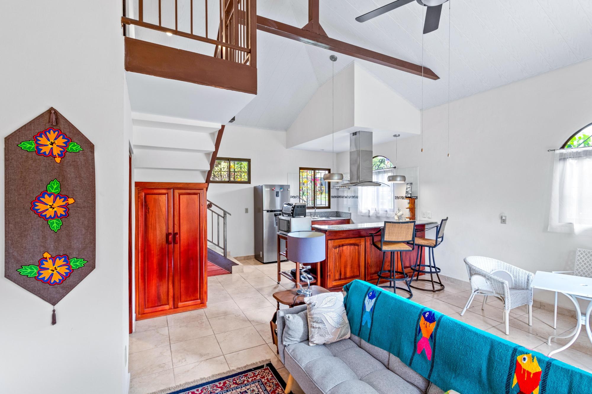 Esta propiedad tiene potencial comercial para generar ingresos significativos, ubicada en pleno centro de Boquete, junto a la Plaza Los Senderos. Actualmente, esta propiedad cuenta con una encantadora casa de 2 dormitorios y 2 baños, con un apartamento de invitados independiente de 1 dormitorio que ofrece potencial de ingresos. La casa fue demolida y se transformó por completo, junto con un apartamento de invitados de nueva construcción en 2013. La casa principal cuenta con una amplia zona exterior frontal para varios estacionamientos, el lote está completamente cercado e incluye una entrada con portón. Hay mucho espacio para expandir la parte delantera o, si es comercial, convertirla en un área de estacionamiento de 6 o más espacios. El techo fue hecho profesionalmente con tejas sintéticas rojas ecológicas. La casa está protegida con rejas de seguridad Fuertec muy confiables y seguras, y un amplio tanque de agua de reserva de 300 galones. En el interior, la casa contiene una sala de estar y un comedor abiertos. La cocina está bellamente diseñada, que combina a la perfección estilo y funcionalidad. Con elegantes gabinetes de madera noble hechos a medida con detalles en paneles de vidrio y encimeras de granito, esta cocina ofrece amplio espacio de almacenamiento y trabajo, tanto para cocinar como para recibir invitados. El dormitorio principal ofrece comodidad y personalidad. Una pared con acento azul intenso crea un punto focal espectacular detrás de la cama, complementada con cortinas a juego y una elegante alfombra que unifica la habitación. La luz natural inunda el espacio a través de un gran ventanal con detalles de hierro forjado. El suelo de baldosas en tonos neutros crea una base limpia y de bajo mantenimiento en toda la habitación. Las estanterías empotradas funcionales ofrecen un amplio espacio para guardar la ropa blanca, mientras que el arco abierto contiguo conduce a un vestidor.