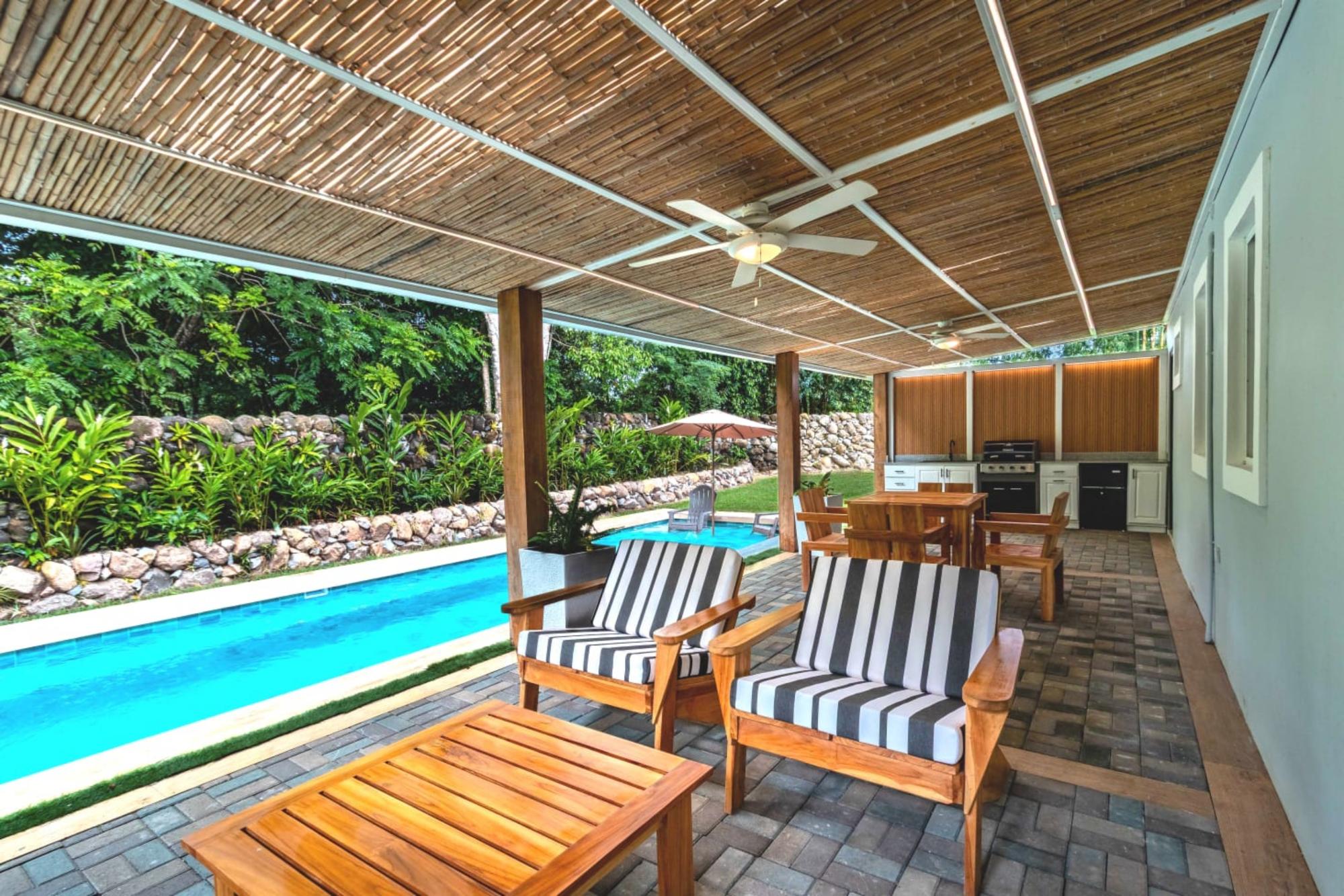 Esta hermosa casa moderna estilo cabaña de 3 dormitorios y 2 baños está diseñada para la comodidad y el entretenimiento. La casa presenta una estética cálida y acogedora que combina a la perfección el encanto rústico con un diseño elegante y contemporáneo. La moderna cocina, con fregadero de acero inoxidable y encimeras de mármol, la convierte en un lugar ideal tanto para el día a día como para cocinar. El dormitorio principal es un remanso de paz con baño en suite, una lujosa ducha a ras de suelo y grifería moderna. Los dos dormitorios adicionales son versátiles, ideales para invitados o como despacho, y comparten un segundo baño elegante y bien equipado. Adéntrese en su oasis privado en el patio trasero con una piscina de agua salada, perfecta para refrescarse y disfrutar de un fácil mantenimiento. Junto a la piscina, una amplia terraza le invita a relajarse o entretenerse con estilo, con una cocina americana exterior integrada con barbacoa, ideal para reuniones familiares o barbacoas de verano. Rodeado de un exuberante paisaje, este espacio interior y exterior combina comodidad, funcionalidad y un toque de lujo. Nota importante: Piscina en construcción. Ubicado en una tranquila y privada comunidad privada para expatriados, este pequeño enclave cuenta con solo tres casas de hermoso diseño, que ofrecen una sensación de exclusividad y tranquilidad. Ubicada en Dolega, Chiriquí, la comunidad ofrece un tranquilo ambiente rural a la vez que se encuentra convenientemente cerca de diversos servicios locales.