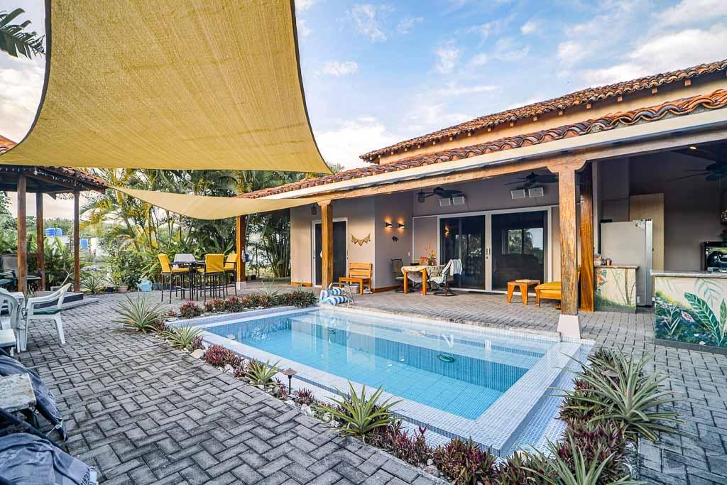 Esta impresionante propiedad en Pedasí se encuentra a menos de 300 metros (menos de 400 pasos) de la hermosa Playa El Toro. Si está buscando una propiedad independiente que no esté en una Asociación de Propietarios, pero que esté a poca distancia a pie de una hermosa playa, este es un hallazgo poco común en Pedasí y una excelente relación calidad-precio. La casa cuenta con un espacioso lote de 900 m² con una casa principal bellamente diseñada que ofrece 277 m² de construcción total (169 m² interiores y 108 m² exteriores bajo techo). Las estructuras adicionales incluyen un cobertizo de almacenamiento de 20 m², una cochera de 20 m², un encantador mirador y una refrescante piscina de 15 m². Un pozo privado de 250 pies garantiza un suministro de agua confiable. La casa está conectada a la red eléctrica y tiene su propio sistema séptico. La construcción de alta calidad incluye acabados de lujo como pisos de porcelana, encimeras de granito y hermosos techos machihembrados de madera noble en el interior y el exterior. Las puertas y ventanas con mosquiteros de seguridad le brindan la opción de dejar la casa abierta a la brisa del mar, incluso cuando no está. Escuche las olas rompiendo en la playa y disfrute de las vistas del océano desde la suite principal del piso superior. El patio trasero es un exuberante oasis tropical con una cocina al aire libre completa, un amplio espacio de terraza y un comedor junto a la piscina, perfecto para relajarse o entretenerse. La casa se ofrece parcialmente amueblada, incluidos la mayoría de los electrodomésticos y algunos muebles (lista detallada disponible). Comuníquese con nosotros ahora para obtener más detalles y programar una visita.