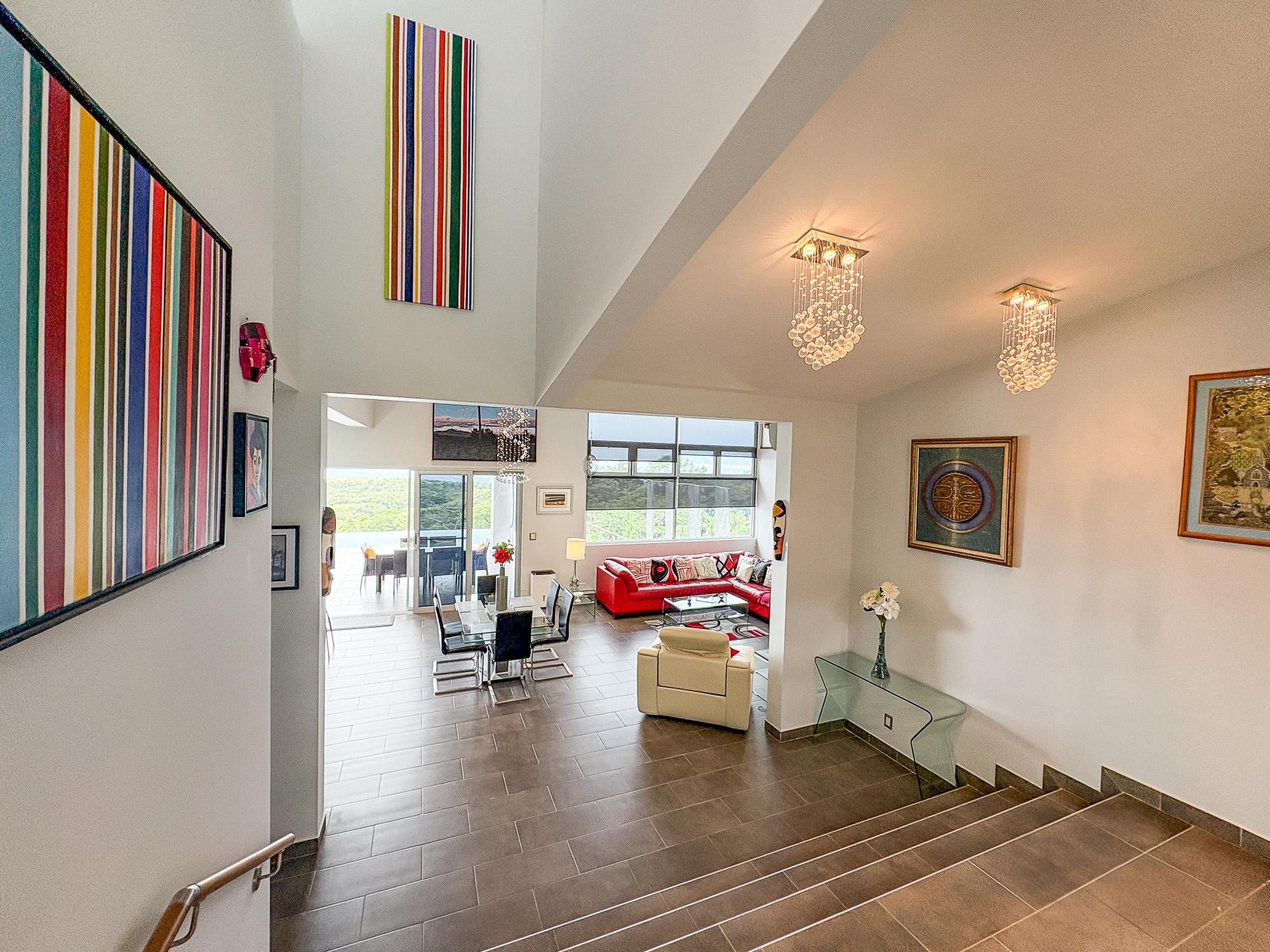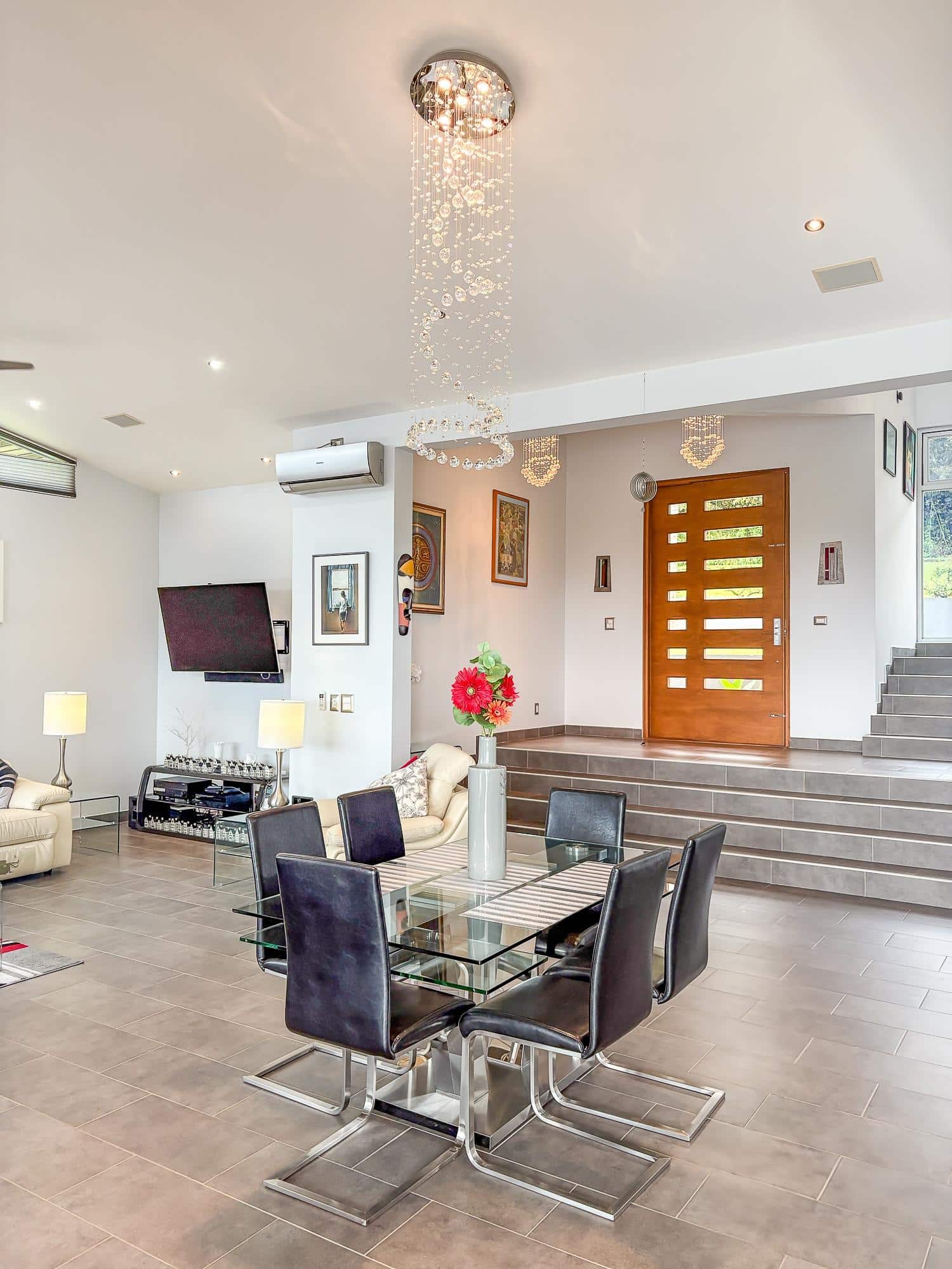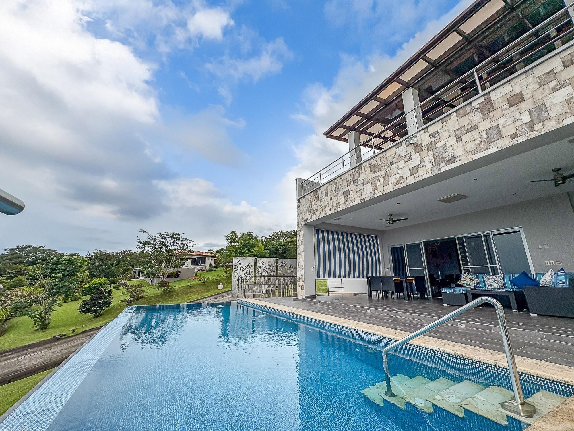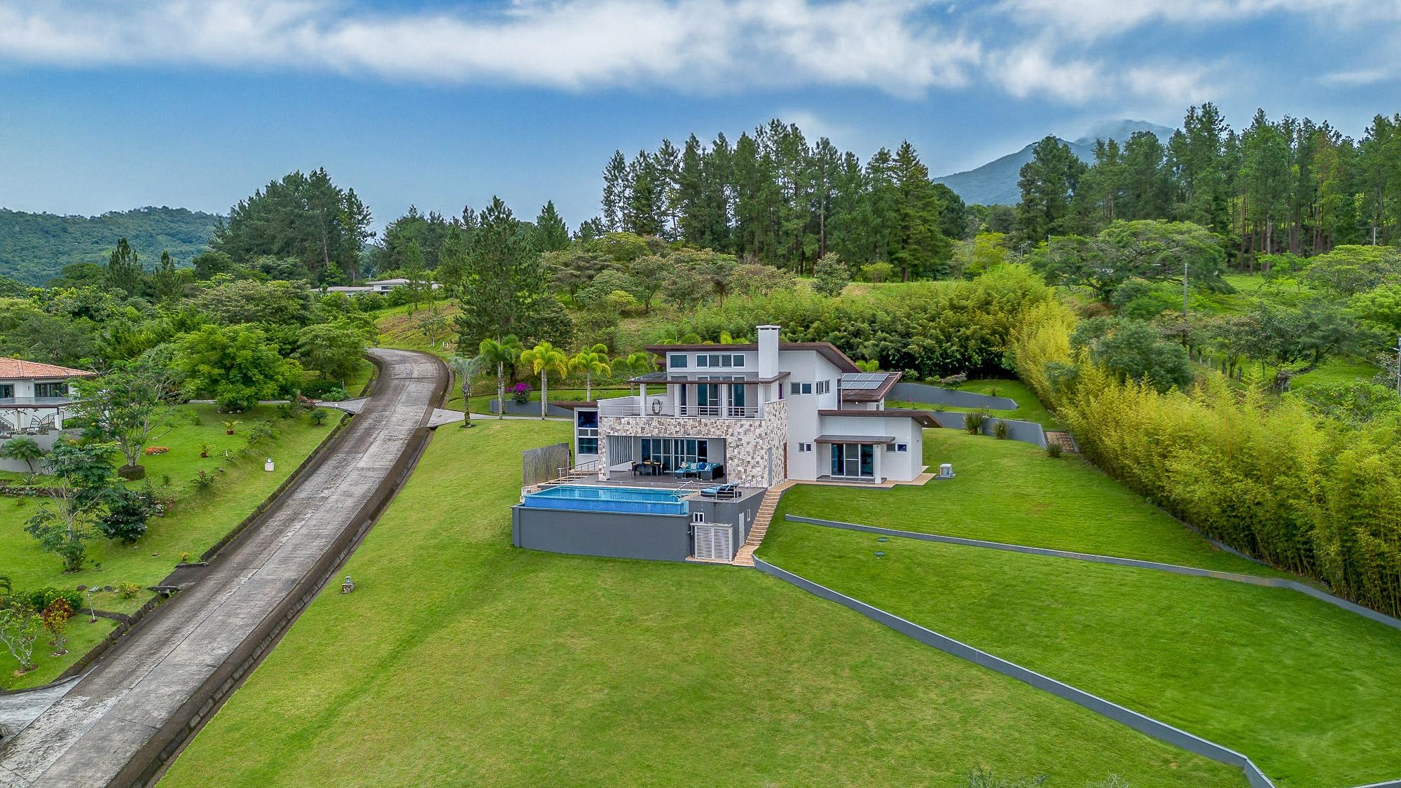 Esta casa de 3 dormitorios y 4,5 baños en Lucero fue diseñada por el arquitecto René Bacil y construida por un contratista estadounidense en 2015. La casa se encuentra en un lote de 3584 m² y tiene un espacio interior total de 443,6 m² con vistas a las tierras bajas de Chiriquí y las islas del Pacífico. Distribución interior y características Los tres dormitorios tienen baños en suite. El dormitorio principal del piso superior mide 33 m² y cuenta con puertas corredizas que se abren a las terrazas delantera y trasera. También incluye un vestidor y un baño con dos lavabos, una bañera profunda y una ducha de lluvia. La cocina está equipada con gabinetes italianos Scavolini, encimeras de silestone platino y electrodomésticos de KitchenAid y Samsung, incluido un centro de bebidas. Hay una gran despensa con un segundo refrigerador y un lavadero con máquinas Samsung de carga frontal. Se utilizan pisos de baldosas de porcelana española en toda la casa, el garaje y los trasteros.