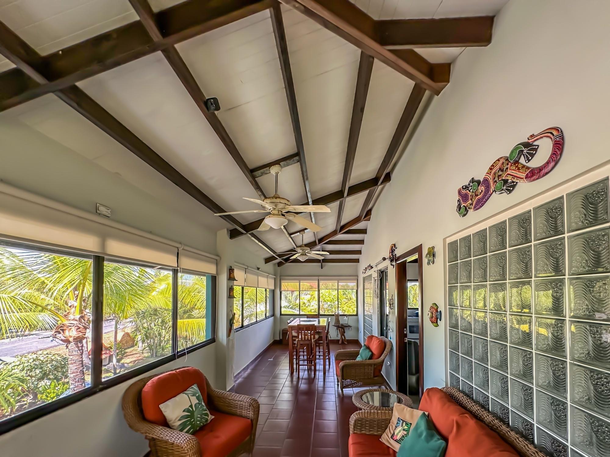 Si está buscando una casa en la playa, tiene suerte, ya que esta encantadora casa de playa ahora está a la venta a un precio increíble. Ha habido un propietario que ha tenido muchos años agradables viviendo aquí. Está ubicada en Barqueta Nice, una pequeña comunidad cerrada en la playa de Playa Barqueta, que se encuentra a 35 minutos en auto a través del campo al oeste de David. Playa Barqueta es la playa más larga de Panamá, 16 millas, sin multitudes y excelente para paseos por la mañana y al atardecer. Barqueta Nice tiene una comunidad internacional amigable de aproximadamente 60 casas, con condominios y un hotel justo afuera de su puerta. La casa tiene dos niveles con la sala de estar de arriba que cuenta con 2 dormitorios, 2 baños, lavadero y un patio cubierto perfecto para disfrutar de su café de la mañana. Hay una cocina espaciosa y una sala de estar acogedora ideal para relajarse después de un largo día. Pero eso no es todo: esta propiedad también incluye una unidad de alquiler separada de un dormitorio en la planta baja, lo que brinda posibles ingresos por alquiler o espacio para miembros de la familia extendida. Las posibilidades son infinitas con este diseño único. Desde esta unidad, se accede a un paisaje cuidadosamente diseñado que rodea una piscina de agua salada que crea un ambiente sereno y acogedor, perfecto para relajarse en los días calurosos. La piscina de agua salada ofrece una alternativa mucho más suave a las piscinas de cloro tradicionales, lo que proporciona una experiencia de natación más natural y ecológica. Esta casa tiene fácil acceso a la playa a través del camino que comienza directamente al otro lado de la calle. En menos de un minuto, sus pies estarán en la arena.