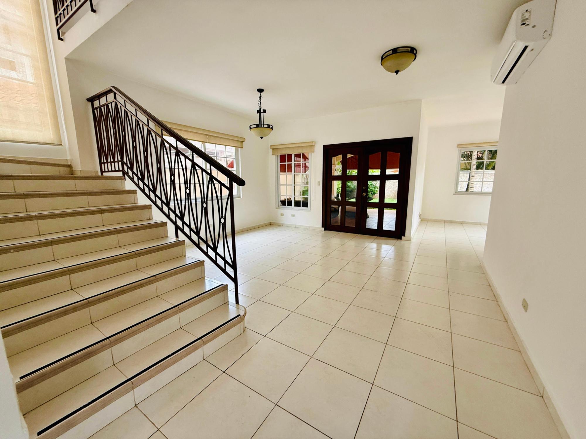 Casa en Alquiler en Villa Valencia – Costa Sur. Esta amplia y cómoda casa de 407 m² está ubicada en el exclusivo residencial Villa Valencia, en Costa Sur. Diseñada para brindar confort y funcionalidad, es ideal para familias que buscan un hogar espacioso en una comunidad segura y bien ubicada. Características de la propiedad: 4 recámaras, cada una con su baño privado, Recámara principal con walk-in closet y balcón, Estudio ideal para oficina o sala familiar, 4.5 baños, Cuarto y baño de empleada, Terraza con baño adicional, Área de lavandería independiente, Aires acondicionados y lámparas instaladas, Línea blanca completa incluida, Amenidades del residencial Villa Valencia: Seguridad 24/7, Piscina para adultos y niños, Gimnasio, Parque infantil y áreas verdes, Canchas deportivas: tenis, fútbol y baloncesto, Salón de eventos. Villa Valencia es una comunidad cerrada que ofrece tranquilidad y un ambiente familiar, con fácil acceso a las principales vías, centros comerciales, supermercados y escuelas.