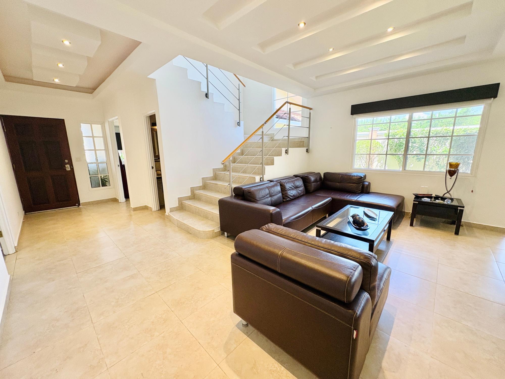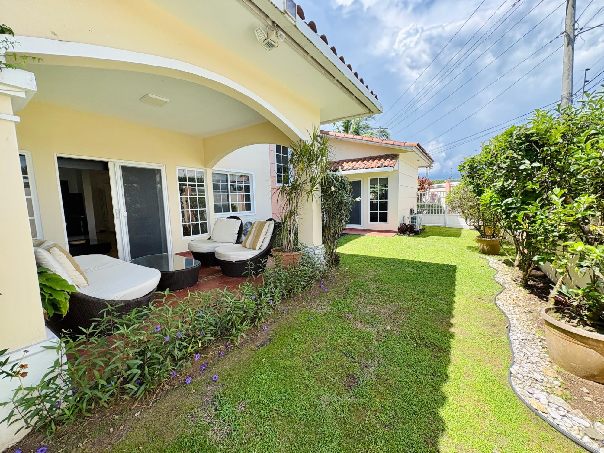 ALQUILER O VENTA DE CASA EN COSTA SUR –VILLA VALENCIA. Hermosa y amplia residencia de 412.91 m² en un lote de 506.30 m², ubicada en el exclusivo residencial Villa Valencia, Costa Sur. 4 recámaras tipo suite, cada una con baño privado, Cuarto y baño de empleada, Medio baño de visitas, Cocina cerrada remodelada, Sala, comedor, recibidor y den cerrado de gran tamaño, Jardín con terraza techada, Lavandería y 2 estacionamientos techados. Villa Valencia ofrece un estilo de vida privilegiado: seguridad 24/7, piscina, canchas de tenis y fútbol, salón de eventos, gimnasio y parque infantil. Una comunidad consolidada con excelente infraestructura educativa (escuelas internacionales y nacionales), supermercados, ciudad deportiva y rápido acceso al Corredor Sur, a solo 9 minutos del Aeropuerto de Tocumen. Precio de Venta: US$540,000. Precio de Alquiler: US$3,000 (semiamoblada).