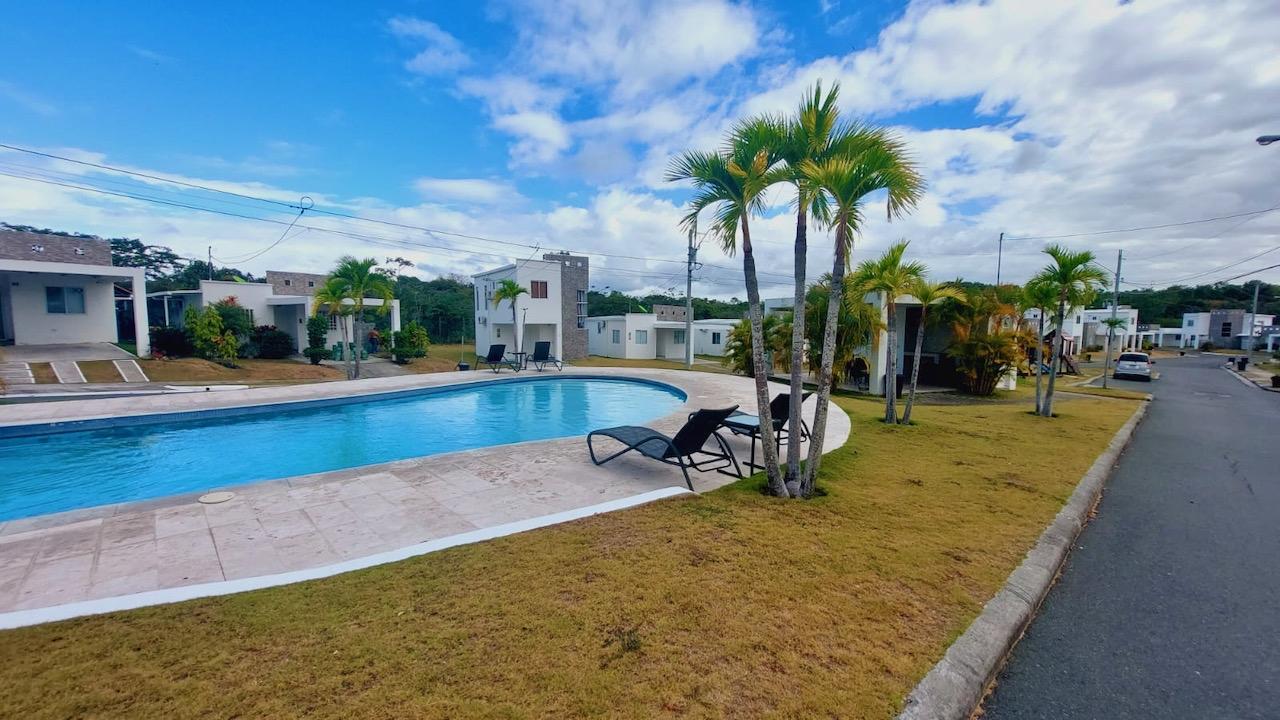 Casa en PH The Village, casa de 3 recámaras y 2 baños, sin muebles. AC en la sala. 1 estacionamiento techado. Año de construcción: 2017. 99m2 de construcción y 260m2 de terreno, sin vecinos atrás para más privacidad(selva atrás y cercada). Precio de venta: 130k. VENTA URGENTE Esta casa de 3 recámaras está ubicada en el complejo residencial The Village en San Carlos, a solo unos minutos de Coronado y muy cerca de la entrada de Costa Esmeralda. Este residencial fue diseñado tomando en consideración la necesidad de tener una comunidad cerrada con todas las comodidades, pero a un precio más cómodo. Es ideal para personas que trabajan en la zona o para quienes quieran tener su segunda vivienda para el verano o fin de semana. Limita con el Río Teta y la Carretera Panamericana y al fondo las montañas. Es muy pintoresco y seguro. Las áreas sociales comunes incluyen el parque principal que consta de muchas áreas deportivas: cancha de tenis, cancha de fútbol, ​​cancha de voleibol de playa y baloncesto. También hay dos hermosas piscinas para adultos, otra para niños y dos cabañas para relajarse o hacer parrilladas. The Village es una comunidad cerrada que cuenta con garita de seguridad 24 horas al día, 7 días a la semana y acceso exclusivo para residentes y visitantes. Esta es una buena opción para quienes quieran tener su propia residencia permanente o como casa de verano o fin de semana en un lugar seguro y agradable. ​