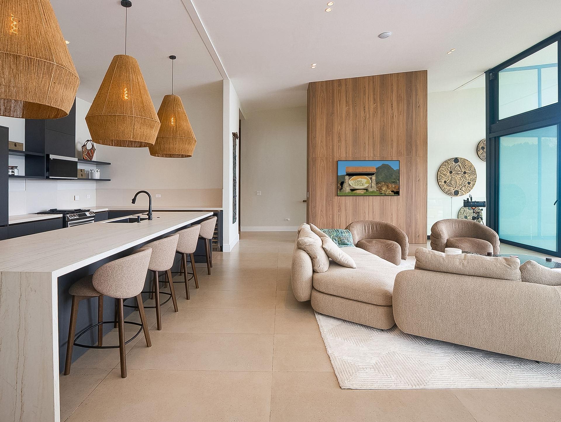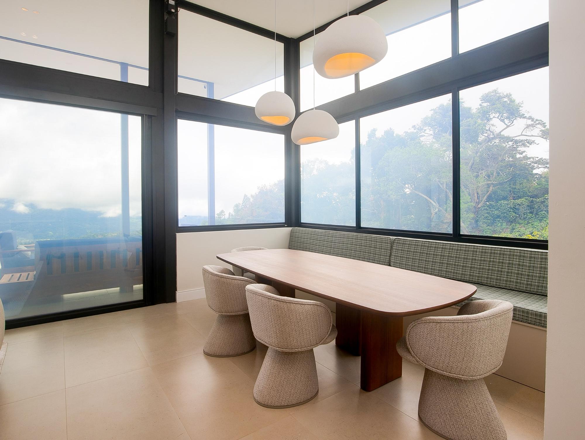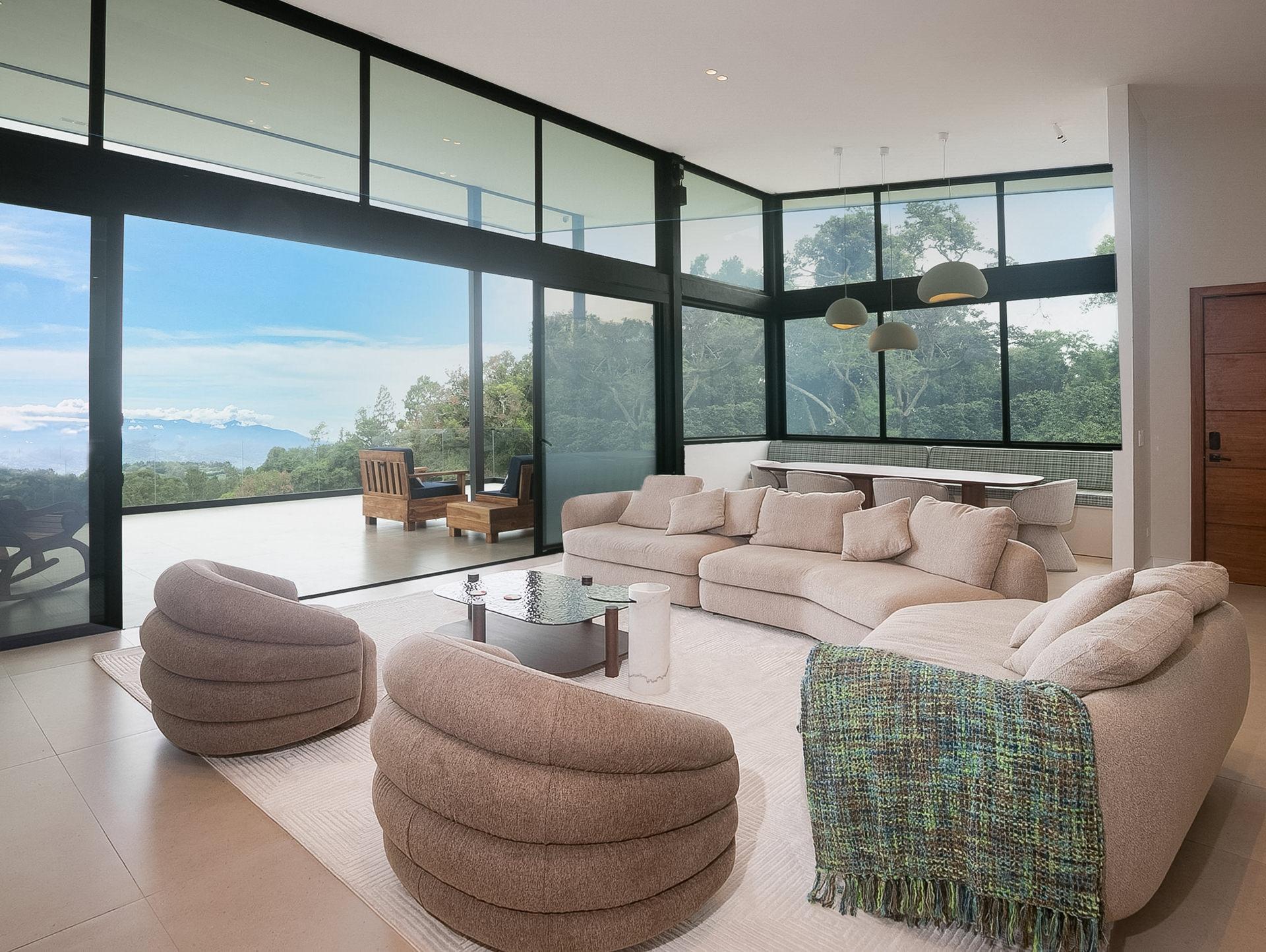 Ubicada en un enclave de lujo en Volcancito, esta casa contemporánea redefine la vida en la montaña. Construida en 2025, esta residencia personalizada ofrece vistas panorámicas del espectacular paisaje montañoso de Boquete. Con 324,5 m² de espacio interior cuidadosamente diseñado y amplias terrazas de azulejos, la casa captura la grandeza del paisaje circundante desde casi todas las habitaciones. Las paredes de cristal de piso a techo dejan entrar el aire libre, manteniendo una estética elegante y moderna. Adéntrese en el impresionante diseño de concepto abierto, con una cocina personalizada de alta gama en gris grafito, funcional y el sueño de cualquier diseñador. Una amplia despensa y lavandería se conectan directamente al garaje, lo que aporta un flujo inteligente y comodidad. La impresionante suite principal cuenta con altos techos abovedados y una terraza de azulejos para disfrutar de las vistas. El baño en suite, estilo spa, cuenta con lavabos integrados, inodoro y ducha de lluvia de acceso directo sin bordillos. Otro dormitorio en la planta superior se puede utilizar fácilmente como oficina en casa, con escritorio empotrado y baño completo adyacente. Diseñada para la flexibilidad, la planta baja incluye un apartamento independiente con entrada independiente, ideal para invitados, ingresos por alquiler o para vivir con varias generaciones. La casa está equipada con infraestructura de alta tecnología y redundante. Cada detalle de la casa refleja la comodidad y la innovación de alta gama. En el exterior, el jardín cuenta con un hermoso paisajismo y riego automático. Su mascota disfrutará al máximo del patio trasero completamente amurallado. Ubicada en un vecindario tranquilo y consolidado, a solo 10 minutos del centro de Boquete, esta casa ofrece un estilo de vida de lujo considerado, inigualable.