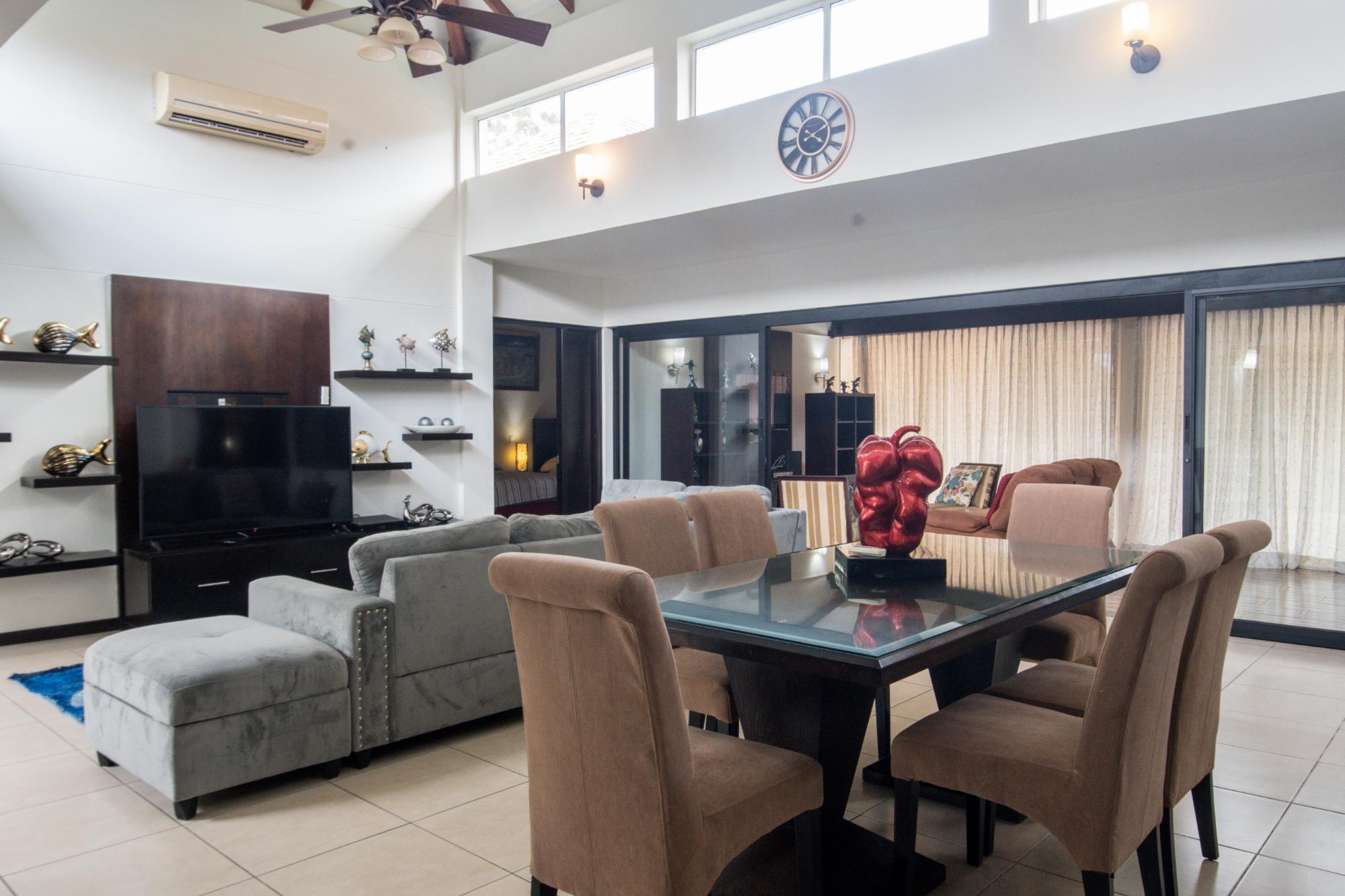 Elegante villa con piscina privada en Costa Blanca Golf & Villas, Decameron Descubre esta elegante villa de un solo nivel que combina privacidad, amplitud y confort, Ubicada en la exclusiva comunidad Costa Blanca Golf & Villas by Decameron. Con 250 m² (2,691 sq. ft.) de construcción sobre un terreno de 992,56 m² (10,686 sq. ft.), esta propiedad ofrece un estilo de vida rodeado de naturaleza, tranquilidad y exclusividad. Rodeada de árboles y jardines tropicales, la villa cuenta con una piscina privada, terraza cubierta y ventanales corredizos que integran de forma natural las áreas interiores y exteriores, ideales para relajarse o disfrutar con familiares y amigos. El interior ofrece tres recámaras más cuarto y baño de servicio, tres baños completos y un medio baño, además de una cocina amplia y luminosa conectada a la sala y al comedor. La recámara principal destaca por su amplitud, su baño con bañera y sus ventanales de piso a techo con vista directa a la piscina. Todas las habitaciones tienen baño privado, walk-in closet y salida al jardín. Entre sus características adicionales: Estacionamiento techado para tres autos más espacio adicional descubierto Conexión de internet de alta velocidad en toda la casa Acceso lateral y puerta principal independientes Área de lavandería funcional La propiedad incluye membresía al campo de golf Mantarraya y acceso al exclusivo Club de Playa Decameron, a solo tres minutos de distancia. La comunidad ofrece seguridad 24/7, cancha de tenis y multideportes, y un mantenimiento mensual que cubre agua, gas, jardinería y recolección de basura, Además del acceso al club de playa. Una oportunidad única de vivir o invertir en una de las zonas más exclusivas de la Riviera Pacífica de Panamá. Contáctanos para agendar tu visita privada.