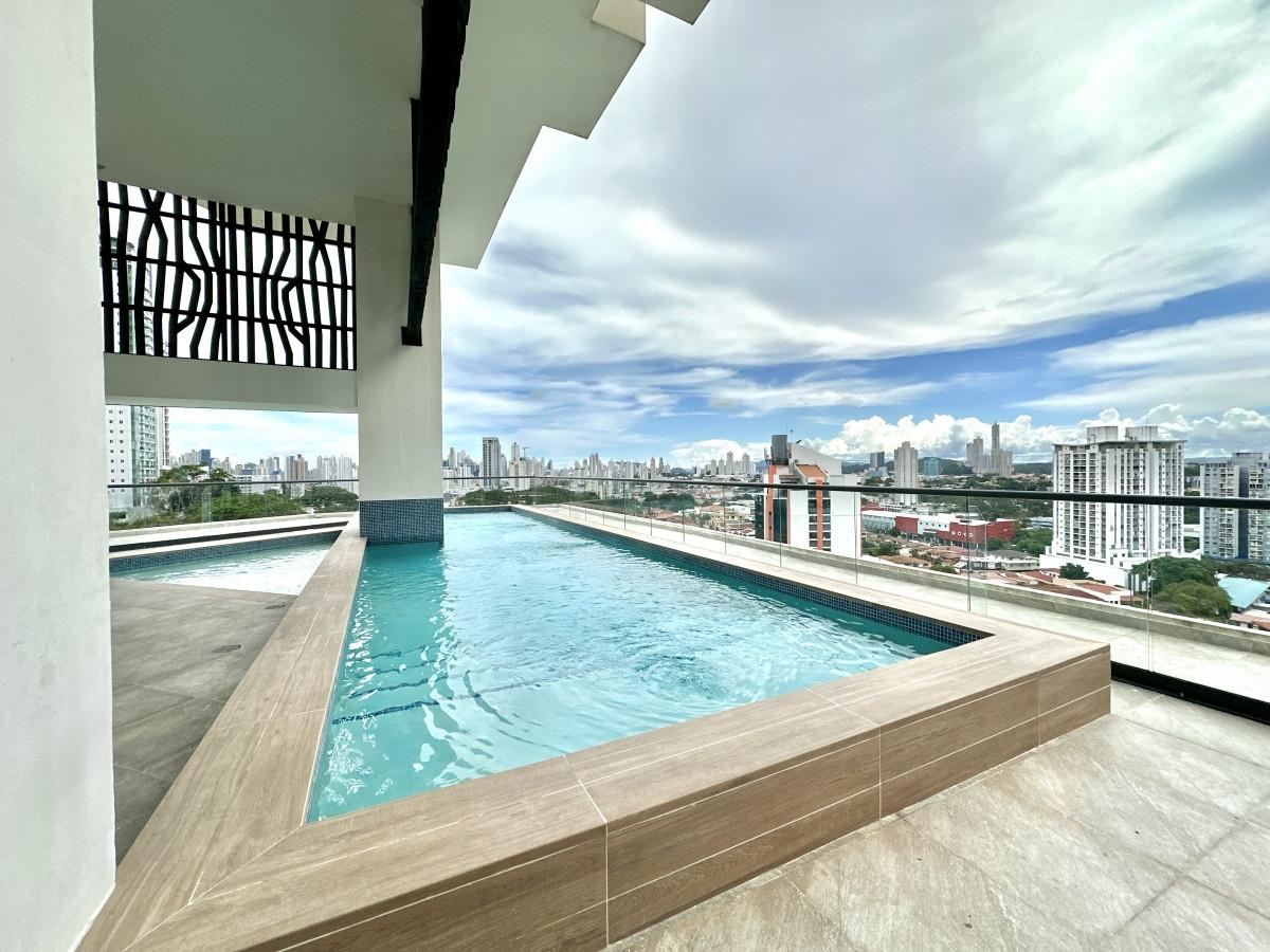 Apartamento nuevo ubicado en el punto más alto de Hato Pintado en el centro de la ciudad en una calle sin salida, a pocos metros de lla 12 de Octubre, la estación del Metro y un sin número de comercios como la Arrocha, Smart Fit, Supermercado El Rey y Do It Center. El proyecto cuenta con estacionamientos de visita, un lujoso lobby, gimnasio, salón de fiestas, área de juego de niños, parque para mascotas y una hermosa piscina con vista a la ciudad. El apartamento cuenta con una cocina abierta, sala/comedor, lavandería, dos recamaras, dos baños completos, lámparas, cortinas enrollables, línea blanca, aires acondicionados inverter Panasonic y un estacionamiento en el nivel S2. Está listo para ocupar inmediatamente con su luz instalada.