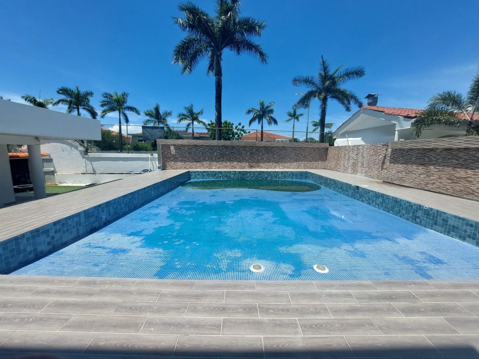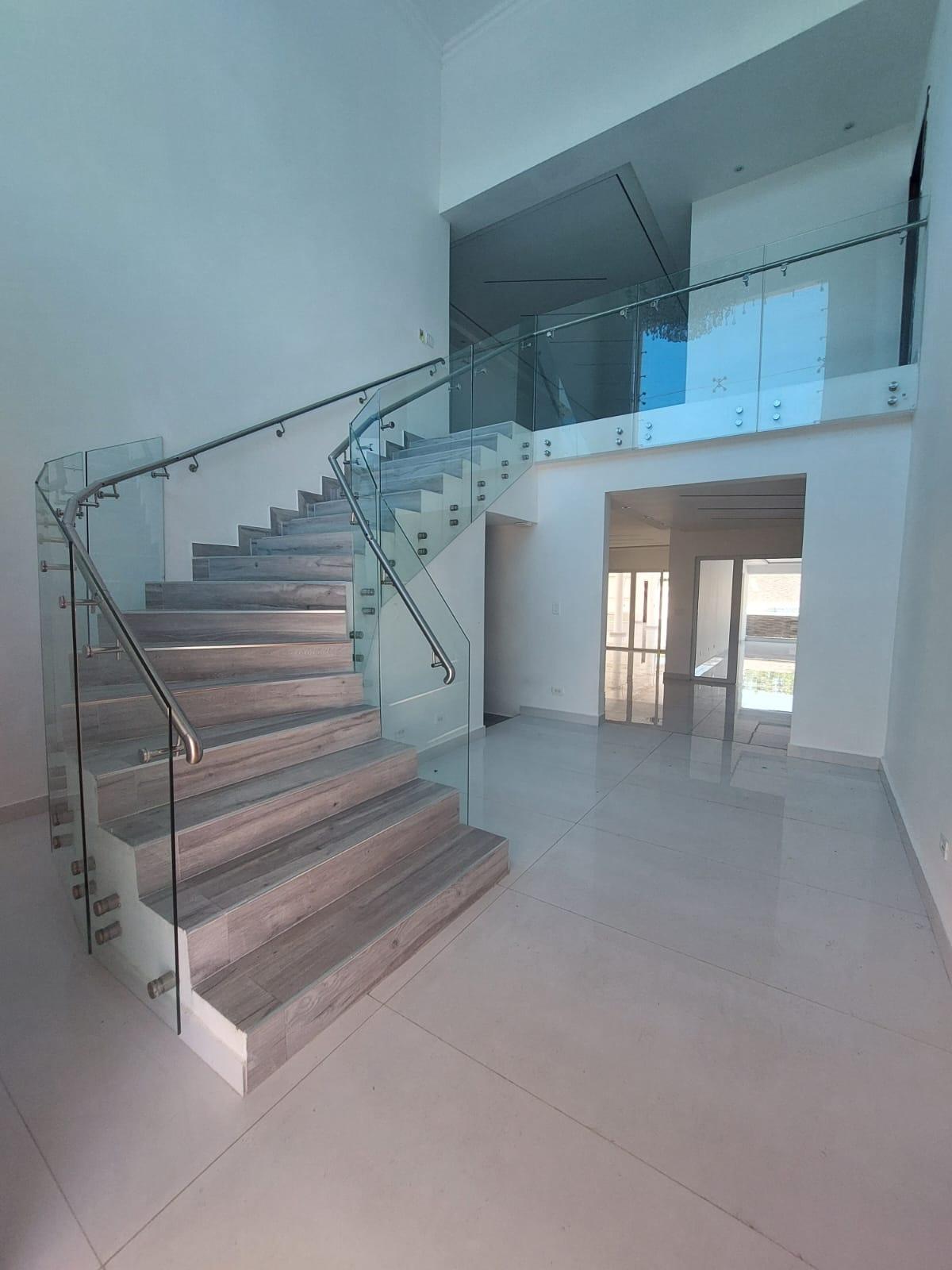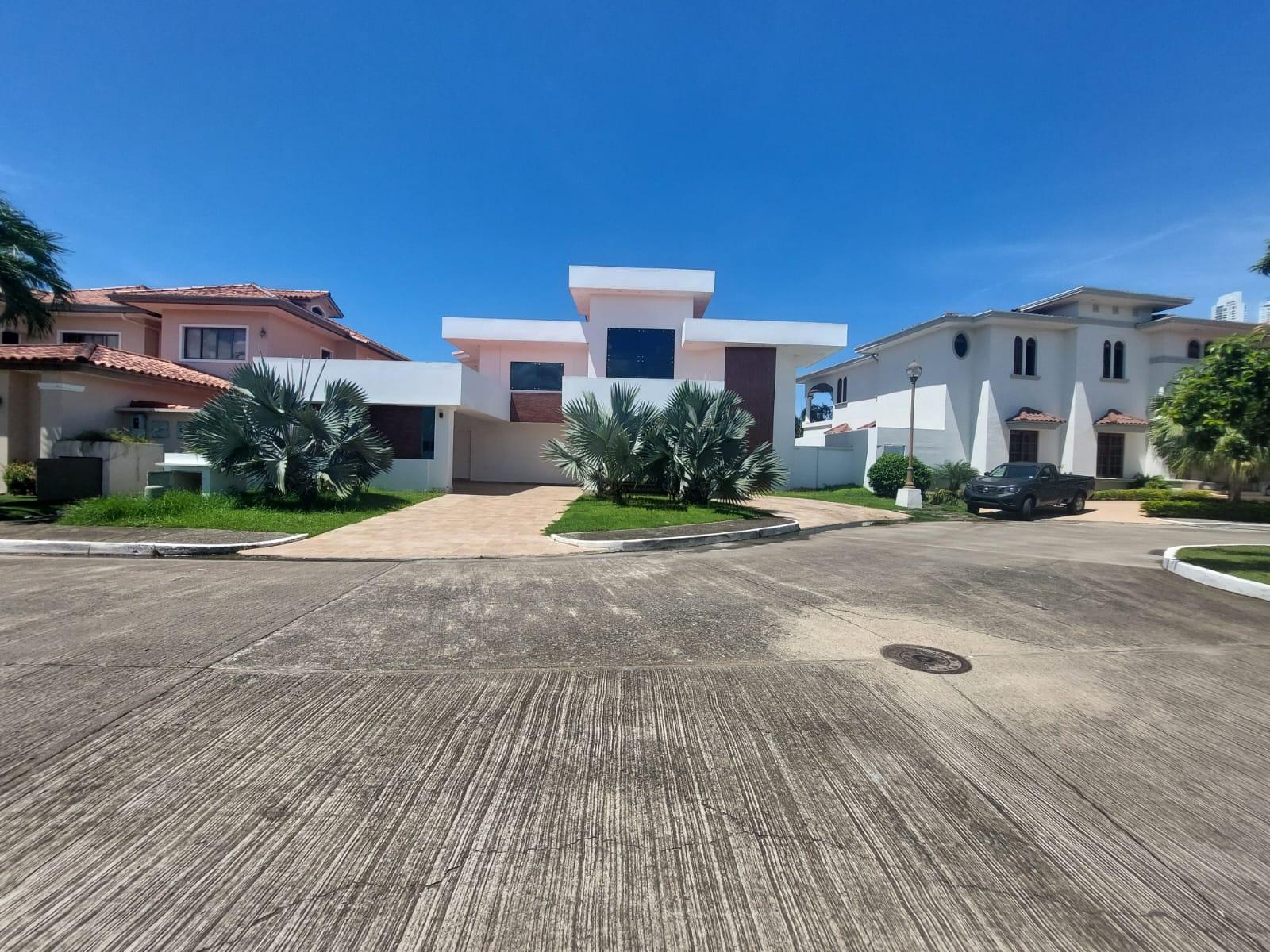 Localización:Costa del Este, Residencial Begonias Tamaño del lote: 972 mts2 Área de construcción:850 mts2 de construcción Descripción: Residencia unifamiliar de lujo con acabados exclusivos. Cuenta con amplio patio frontal y gran patio trasero con piscina. En planta alta: •(1) Espectacular recámara principal que mide aproximadamente 70 mts2 y cuenta con espacio para sala independiente, un amplio balcón privado, 2 walk in closets (uno para ella y otro para él) y espectacular baño. El baño principal está completamente revestido en mármol y cuenta con tina con hidromasaje independiente de la ducha. •(3)Tres amplias recámaras secundarias, cada una con su baño independiente y walk in closet. •Muy amplia sala familiar con espacios independientes para juego y para estudio. En planta baja: •Imponente hall de entrada con doble altura •Amplia sala y comedor •Den familiar u oficina •Amplio family room con fino bar hecho a la medida, 2 salas y comedor auxiliar. Espectacular cava revestida en mármol, piedra, madera y onix. •Moderna cocina con finísimos muebles •Medio baño de visitas •Cuarto y baño de empleadas •Depósito de gran tamaño el cual se puede convertir en un segundo cuarto de empleada o cuarto para chofer •Lavandería techada con una segunda cocina y desayunador para el personal de servicio. También otro espacio de lavandería sin techar. •Amplias terrazas techadas en tres ambientes con bar incorporado •Baño completo para el área de la piscina •Piscina completamente cercada con su cuarto de motor •Dos tanques de reserva de agua con sistema de bombeo y filtrado de agua para toda la casa. •Amplio patio trasero •Jardín frontal •Puerta chochera •3 Estacionamientos techados