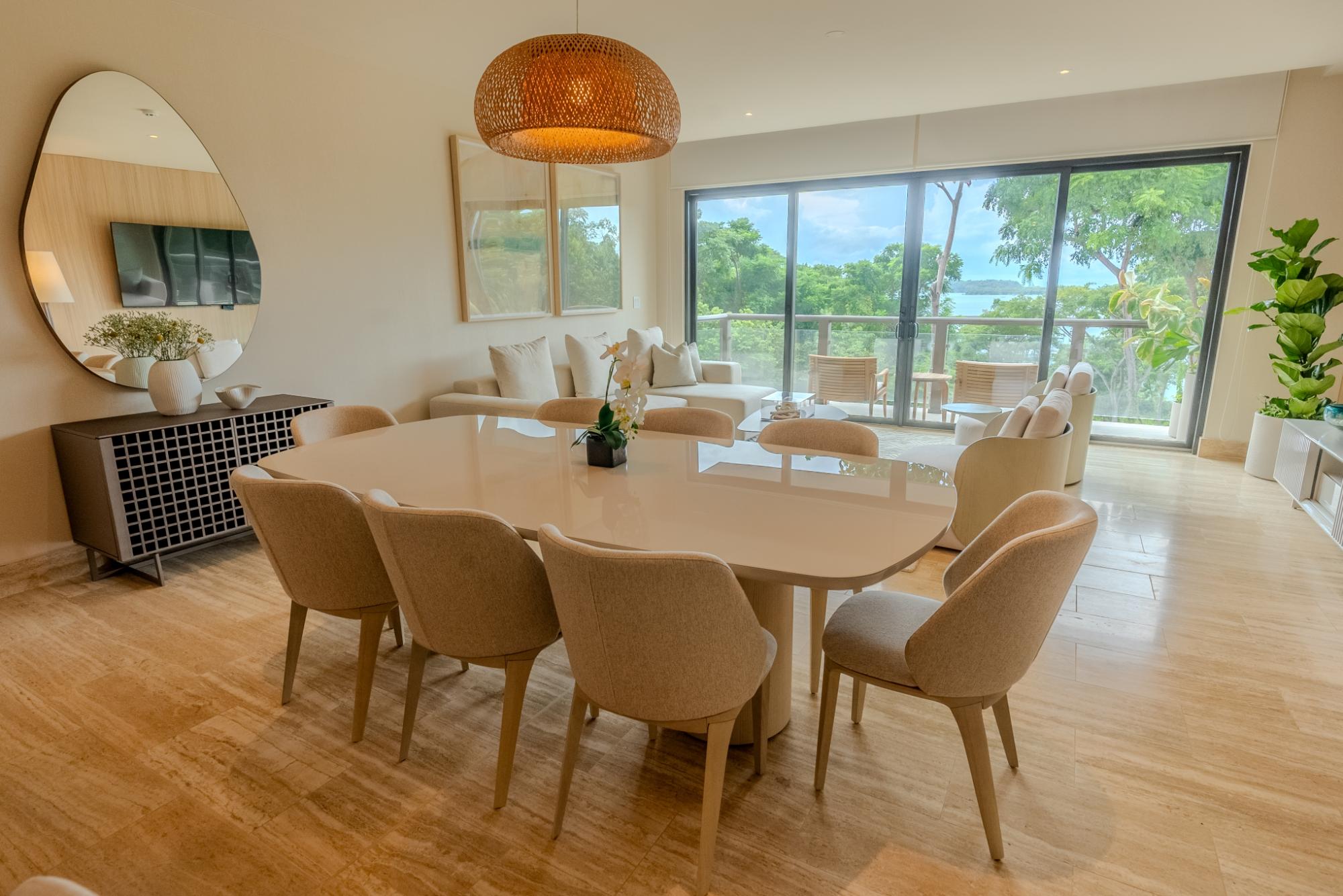 Uno de los últimos apartamentos disponibles en la primera fase de Pearl Island: La Península. El Edificio 7, con solo 7 apartamentos, fue diseñado por Hart Howerton. Situado en una colina, sobre las Villas, ofrece una ubicación privilegiada. Este apartamento de 196 m², recién amueblado, está en la segunda planta, ocupando medio piso. La espaciosa y luminosa residencia cuenta con ventanas de piso a techo y ofrece 3 habitaciones, 3 ½ baños y un cuarto de servicio. El diseño de concepto abierto en la zona común incluye una cocina de chef equipada con electrodomésticos de primera línea, un amplio salón y una lujosa terraza con impresionantes vistas al Océano Pacífico, el Golfo de Panamá, la Marina y deslumbrantes atardeceres. El apartamento está completamente amueblado y terminado, con paneles de madera en la zona social y elegante papel tapiz a lo largo de toda la residencia. Ubicado a pasos del Beach Club de La Península y la Marina, disfrutarás de acceso al restaurante Panama Red, comidas informales junto a la piscina, gimnasio, paddleball, canchas de tenis y más. Poseer una propiedad en Pearl Island va más allá de tener una casa en un enclave privado; ofrece un estilo de vida sin igual. A solo 20 minutos de la ciudad, Pearl Island es accesible por ferry, barco o avión, gracias a una pista de aterrizaje privada que acomoda aviones de tamaño mediano y una impresionante marina de clase mundial. Este desarrollo de lujo de 3,500 acres, donde el 70% permanecerá como reserva natural, cuenta con 30 kilómetros de costa y siete playas apartadas en el Archipiélago de Las Perlas.