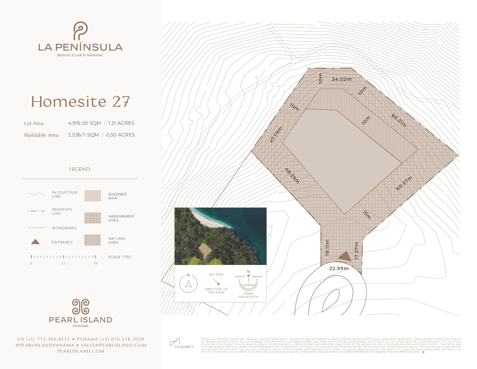 EspañolSituada a pasos de la arena y el mar en el complejo turístico de la isla privada de Pearl Island, esta propiedad privilegiada de 4.916 m2 (1,21 acres) está situada en medio de un dosel de árboles y captura vistas panorámicas del Golfo de Panamá. La ubicación orientada al norte ofrece máxima privacidad, rodeada de exuberante vegetación tropical y naturaleza prístina, con impresionantes amaneceres y atardeceres. Ideal para construir una obra maestra arquitectónica de lujo, esta propiedad ofrece pautas de construcción flexibles que permiten diseños personalizados. Ubicado cerca del Beach Club, disfrute del acceso a restaurantes informales junto a la piscina, gimnasio, pádel, canchas de tenis y más. Hay un amarre en el puerto deportivo de clase mundial disponible y la pista de aterrizaje privada ofrece una comodidad inigualable. Ser propietario de una casa en Pearl Island significa más que simplemente ser propietario de una casa en un enclave de isla privada; ofrece un estilo de vida incomparable. A solo 20 minutos del continente, se puede acceder a Pearl Island en ferry, barco y avión a través de una pista de aterrizaje privada que admite aviones de tamaño mediano. Este complejo turístico de lujo de 3500 acres en una isla privada en el archipiélago de Las Perlas cuenta con 30 kilómetros de costa y siete playas aisladas. El compromiso de Pearl Island con la preservación de su belleza natural se refleja en su plan maestro, que dedica el 70 % del terreno a una reserva natural. La isla alberga más de 150 especies de aves, 15 variedades de corales, 700 tipos de peces y 16 especies de mamíferos. Descubra la combinación única de lujo, exclusividad y belleza natural que define a Pearl Island.