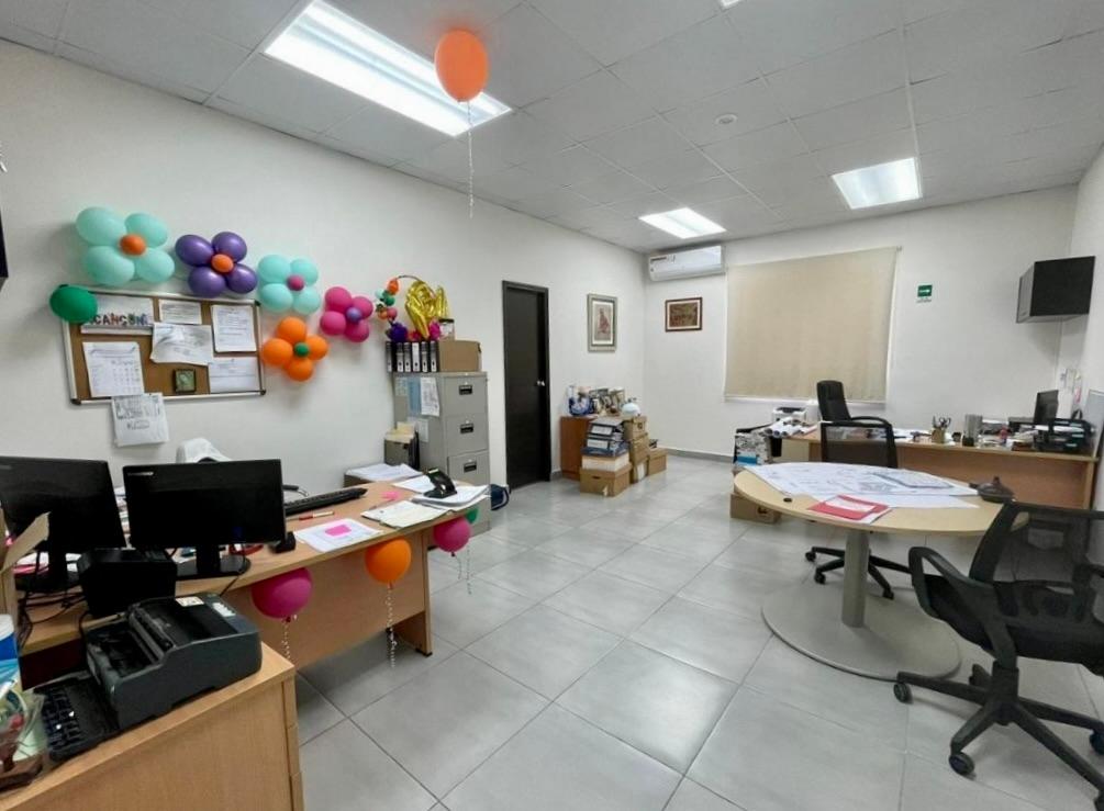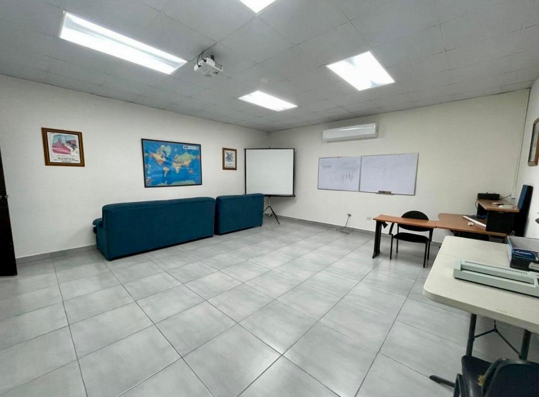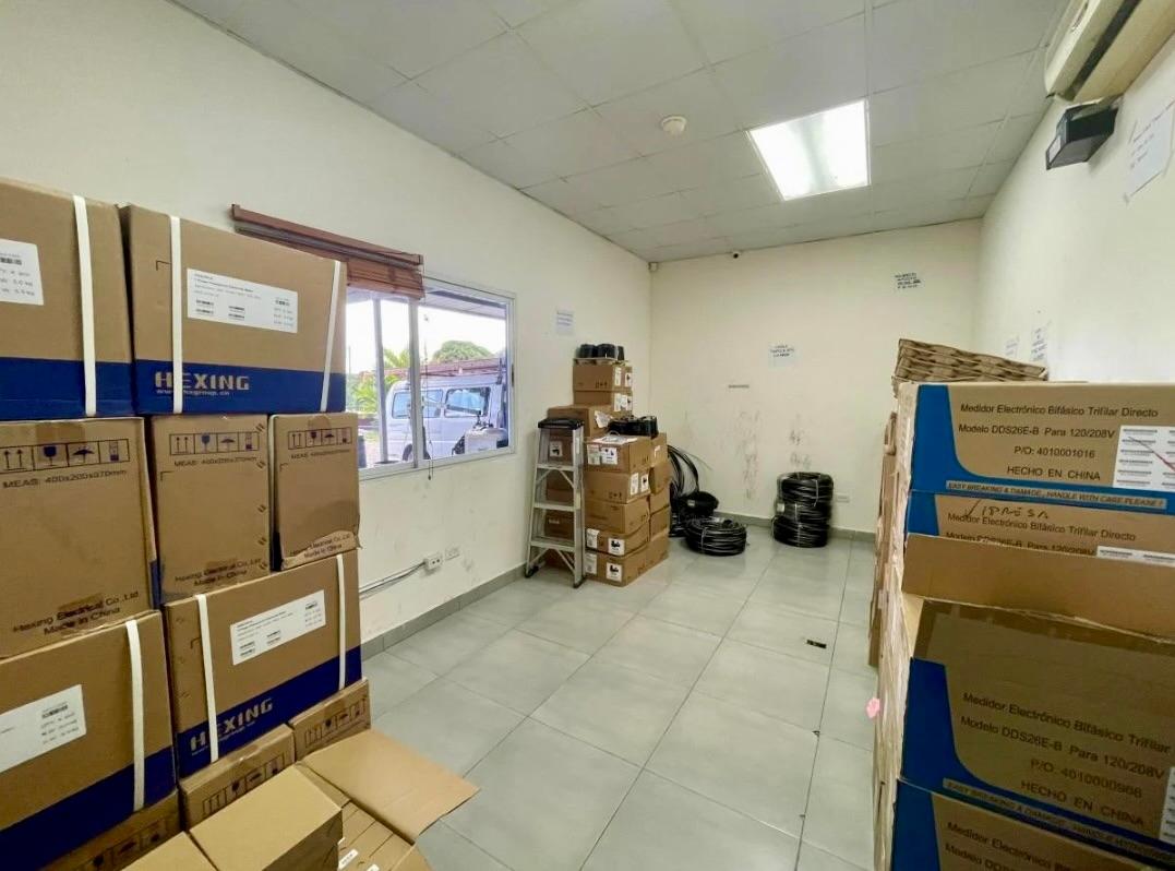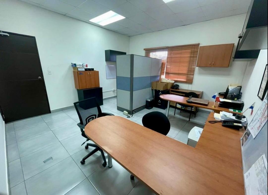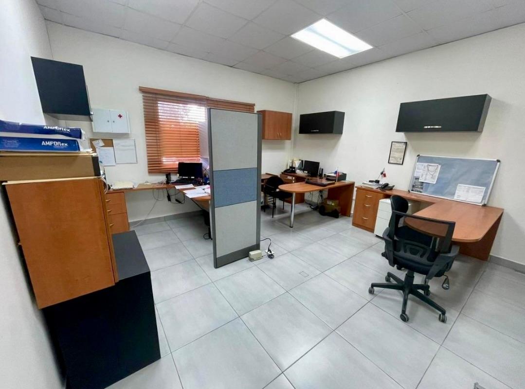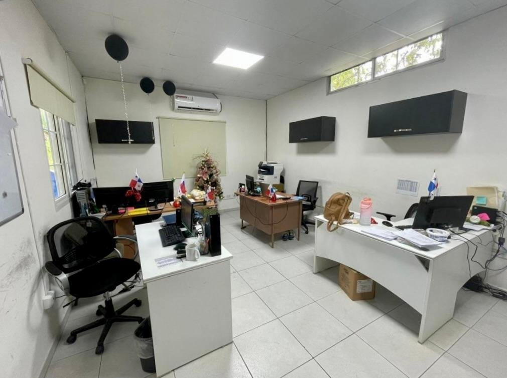 La propiedad cuenta con un edificio principal a nivel de calle, con áreas de oficinas, estacionamientos techados, depósitos, cafetería, comedor para personal, servicios sanitarios y área de empleados. Adicionalmente, dispone de un anexo con oficinas al que se accede por una escalera de concreto techada. Las instalaciones incluyen servicios sanitarios completos (con duchas y acabados en cerámica y azulejos), cafetería equipada, depósitos y espacios de apoyo para personal. El acceso principal se realiza a través de un portón corredizo de metal de 5 m de altura. Todo el perímetro está cercado con bloques y malla ciclón, además de muros de retén en la parte posterior y lateral izquierdo.