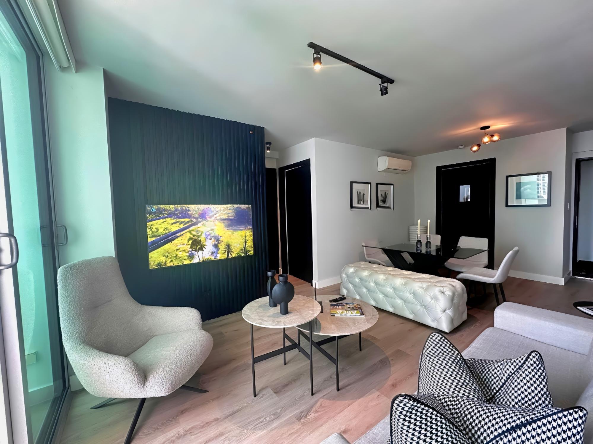 Descubre este magnífico apartamento ubicado en el corazón de Bella Vista, uno de los sectores más céntricos y codiciados de la ciudad de Panamá. A solo pasos de supermercados como El Rey y Riba Smith, locales comerciales, y áreas verdes como el Parque Urracá y la Cinta Costera. Además, está cerca de las principales vías de la ciudad, en una calle tranquila y segura. Características del Edificio: Construido en 2013, este edificio se encuentra en excelente estado, con control de acceso 24/7 y ofrece: -Piscina -Jacuzzi -Gimnasio totalmente equipado -Área de niños -Mesa de billar -Mesa de ping pong -Salón de Eventos -Garita de seguridad -Elevador -Elegante Lobby -Estacionamientos de visita Apartamento recién remodelado y amueblado: -Electrodomésticos Fridiere -Aires acondicionados Inverter -Cocina nueva con sobres en piedra sintetizada -Pisos en SPC de alta resistencia -Pisos Porcelanato antideslizantes cocina y baños -Roller nuevos Screen y blackouts -Espejos grandes con iluminación led baños -Dimer en la sala y el dormitorio Distribución del Apartamento: -Sala Comedor: Amplia con ventanales de piso a techo que proporcionan abundante luz natural. -Balcón: Con vistas impresionantes a la ciudad, el Casco Antiguo y el Canal de Panamá. -Cocina: Espaciosa y remodelada con muebles modulares, de tipo americano (independiente a la sala). -Lavandería: Dentro del apartamento con ventilación directa y alacena. -Baño Completo: Accesible desde la sala para visitas y la recámara -secundaria. -Recámara Secundaria: Con closet empotrado. -Recámara Principal: Amplia, con closet empotrado de pared a pared, ventanales con hermosa vista e iluminación, y baño completo privado. Esta es una oportunidad única para vivir en una de las mejores ubicaciones de la ciudad con todas las comodidades modernas. ¡Contáctanos para más información y agendar una visita!