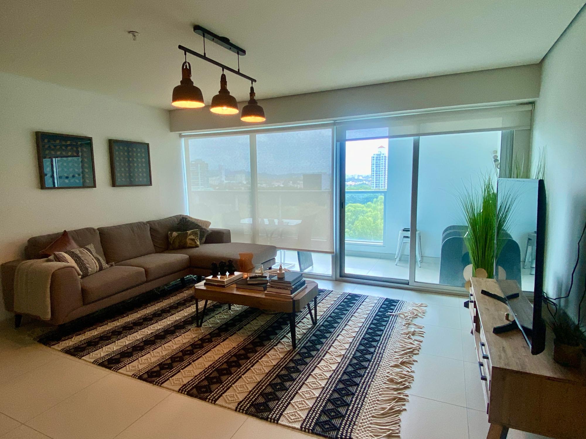 Apartamento para alquiler con línea blanca. Cuenta con 125 metros de construcción, dos habitaciones, dos baños completos, sala, comedor, balcón con vista al parque de Costa del Este y un espacio de estacionamiento. El edificio cuenta con seguridad 24 horas, Área social en dos niveles, 4 niveles de estacionamientos, Estacionamientos de visita y Dos áreas sociales: • Nivel 5: Piscina, cancha de squash, pista para caminar, área de BBQ, área techada para juegos de niños, terraza abierta, gazebo. • Últimos niveles: Piscina infinity, jacuzzi, sauna, gimnasio, terraza, salón de juegos, salón de eventos