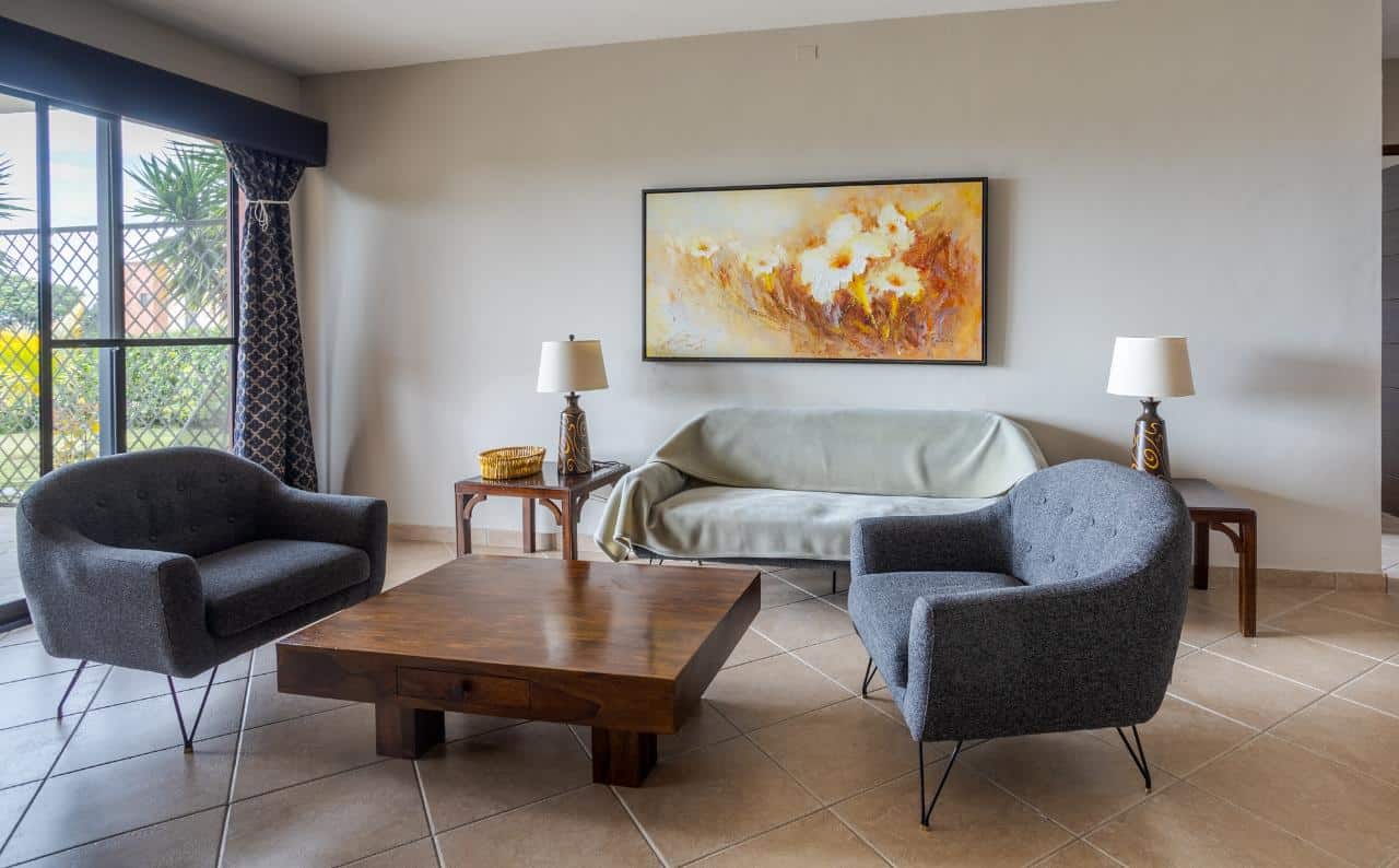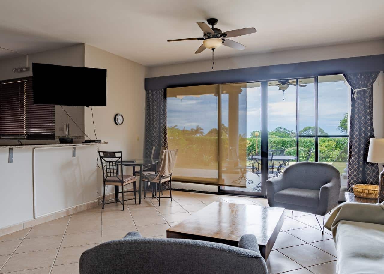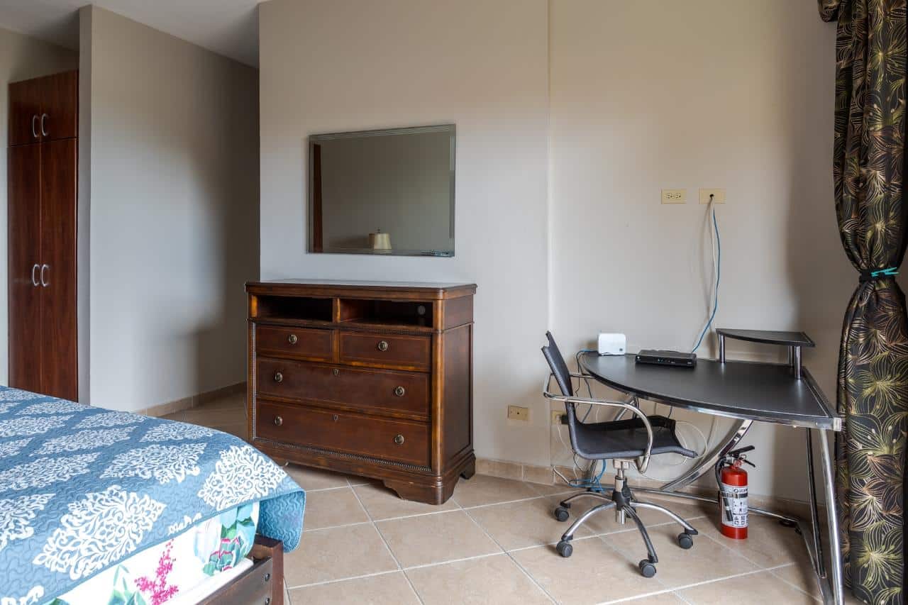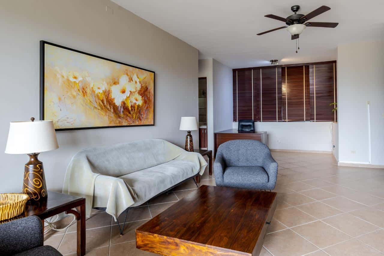 Disfrute de la vida en este encantador condominio de Boquete Country Club. Con su construcción de alta calidad y encantadoras vistas desde cada habitación a un jardín verde y cercado, le encantará la vida en este fantástico condominio en venta en Boquete, Panamá. El terreno del jardín le pertenece y se puede acceder fácilmente desde las tres terrazas del condominio que conducen desde cada una de las habitaciones principales. El condominio de la planta baja disfruta de abundante luz natural con todas esas puertas corredizas de vidrio con ventanales. Tiene un excelente diseño diseñado para una vida fácil. La sala de estar de concepto abierto integra perfectamente la sala de estar, el comedor y la cocina. Las puertas corredizas de vidrio del piso al techo y los grandes ventanales permiten la entrada de luz natural al espacio. Esas tres terrazas combinadas con el jardín privado hacen de esta una oferta única en una excelente comunidad de Boquete. Y la terraza principal es bastante grande, lo que la convierte en un excelente lugar para relajarse o entretenerse. El salón es amplio y tiene excelentes acabados. El condominio cuenta con dos amplios dormitorios con grandes armarios empotrados y terrazas contiguas que incitan al descanso durante el año al aire libre primaveral. Estos retiros brindan un lugar perfecto para saborear el café de la mañana o contemplar las estrellas en las claras noches panameñas. El bonito dormitorio principal cuenta con baño completo en suite.