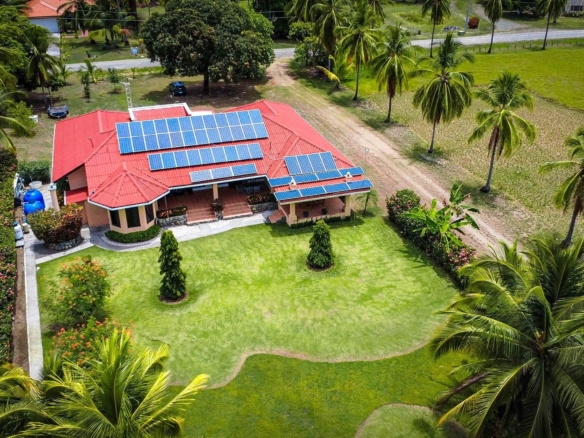 PROPIEDAD FRENTE AL MAR — PLAYA MALIBU, PANAMÁ Precio de lista: $950,000 | 5 Recámaras | 6 Baños + 3 Medios | Garaje para 2 Autos | 297 m² Construido | Lote de 1,250 m² | Construida en 2018 Ubicada directamente sobre la arena en Playa Malibu, esta propiedad de dos pisos ofrece 229 m² de espacio habitable interior distribuidos en dos plantas, además de un pabellón comedor circular independiente, todo en un lote frente al mar completamente cercado y con portón, a pasos del acceso privado a la playa. La planta baja se abre a través de paredes de vidrio plegables a una terraza cubierta (32 m²), difuminando la línea entre el interior y el exterior. La cocina cuenta con una isla de gas, encimeras de mármol, gabinetes de madera maciza y electrodomésticos de acero inoxidable. Una mesa de comedor de madera maciza con borde natural es el punto central del área de estar y comedor de planta abierta. Dos recámaras y dos baños completos completan la planta baja. En la planta superior, tres dormitorios —el más grande de más de 25 m²— comparten un balcón de 35,9 m² con vistas al mar. Un despacho con vistas al océano y varios baños completos y aseos completan la segunda planta. En el exterior, una piscina con toldos y tumbonas se ubica en el centro de un césped impecablemente cuidado. Un cenador al aire libre con techo de paja y cocina completa para barbacoa sirve como centro de entretenimiento. Un muro de contención reforzado de más de 10 metros de altura protege toda la propiedad. La playa que se extiende más allá es uno de los tramos ininterrumpidos más largos de Panamá: más de 8 km de costa del Pacífico transitable a pie hasta el río Chame. Construida en 2018. Totalmente amueblada. Lista para entrar a vivir. Garaje para dos coches. Casa de servicio en la propiedad. Con un precio de 950.000 dólares —construcción terminada en primera línea de playa— esta es una oportunidad única que no se puede replicar a este precio.
