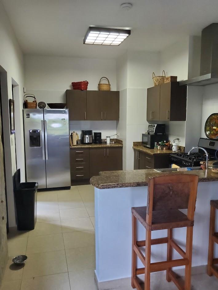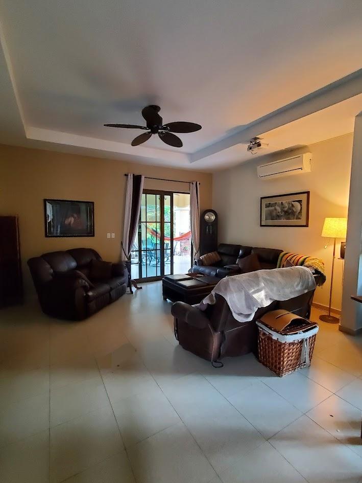 Casa de lujo en un lote grande con opción de financiamiento! PH Hacienda Pacífica – Etapa 1 Rodeado de naturaleza, todas las comodidades modernas y a 10 minutos de Coronado Esta casa moderna de inspiración española fue cuidadosamente construida y viene con electrodomésticos, aires acondicionados, cortinas y luces. La prístina comunidad cerrada de Hacienda Pacifica ofrece calles amplias de calidad, infraestructura subterránea (agua, electricidad e internet de fibra óptica), además la fase 1 también ofrece un área social con una gran piscina, tenis y un gimnasio. Estas son las características de esta propiedad: 3 dormitorios 2,5 baños 1500 m2 de terreno tropical bien cuidado 243 m2 de área total construida 216 m2 de área cerrada Cómodo interior de concepto abierto Cocina moderna con estufa de gas y nevera doble Barra desayunadora Entrada tipo vestíbulo con puertas de seguridad. Pisos de baldosas de colores claros en todas partes Tocadores para él y para ella en el baño principal Baños elegantes con bañeras Amplio espacio de almacenamiento Aire acondicionado moderno en todas las habitaciones Ventiladores de techo en todas las habitaciones Cortinas de ventanas Listo para Internet de fibra óptica y televisión por cable Garaje para 2 coches con puerta automática y control a distancia Lavandería con lavadora y secadora Calentador de agua a gas para toda la casa Tanque de reserva de agua de 600 galones con bomba de presión Terraza con hamacas y barbacoa de gas Flores, plantas y árboles frutales maduros: almendro, coco, moringa, noni, plátano, papaya Construcción 2011 Exoneración de 20 años a partir de noviembre 2011 Sin impuesto territorial debido al bajo valor declarado del terreno Cuotas de mantenimiento de $190/m Los vendedores considerarán alquiler con opción a compra o similar Las características de PH Hacienda Pacifica: Área social al aire libre para reuniones familiares Canchas de tenis Gimnasio Enorme piscina con baños Rutas de senderismo y cascada privada para bañarse Recolección de basura dos veces por semana Infraestructura subterránea de electricidad, agua y internet por fibra óptica Garita de seguridad y rondas las 24 horas, los 365 días del año Cuotas de mantenimiento de $190/m