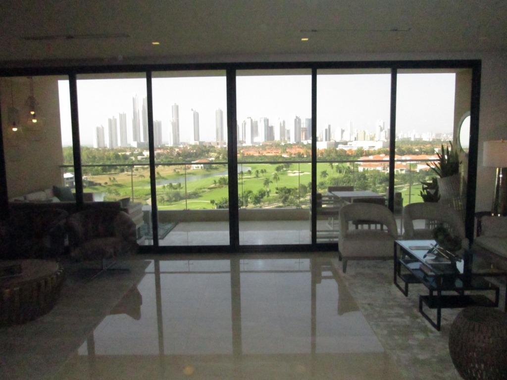 SANTA MARIA PH LA VISTA ON THE GREEN APARTAMENTO EN ALQUILER Excelente apartamento en el PH LA VISTA on the Green, ubicado en el hoyo 18 del Club de Golf de Santa María, super buena ubicación con una vista insuperable hacia los campos de golf y hacia el pacifico. Consiste en un apartamento de 304 metros, distribuido muy bien, iniciando con una gran sala con vista frontal a los campos de golf y balcón grande y amplio donde puede colocar mobiliario de exteriores. Igualmente tiene suficiente espacio para un comedor de 10 personas o mas. El área de cocona es muy acogedor con una entrada independiente para el servicio y suministros, con su linea blanca, centro de lavado y cuarto y baño de empleada. Aparte se encontrara en el área social del apto. un baño de visitas. El área de recamaras esta separada por su puerta de acceso y al entrar se encuentra un salón familiar o de TV o puede ser para un estudio. Las 3 recamaras tienen sus baños y wall in closets, la principal dirigida hacia los campos de golf con una vista fabulosa. El inmueble se maneja con Aires centrales y splits. Además de abanicos en ciertos lugares. Tiene 3 parkings Las áreas sociales del PH son excelentes, con piscina rodeada de vegetación y jardinerías, gimnasio de primera, salón de reuniones y fiestas muy atractivo, sala de juegos para niños, seguridad y conserjería, sistemas de video y seguridad digitales y otros mas. No deje de visitar este apto en alquiler. Estará disponible el primero de NOVIEMBRE DE 2025.