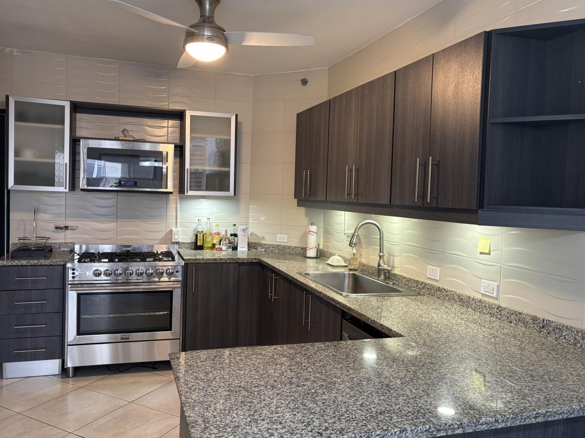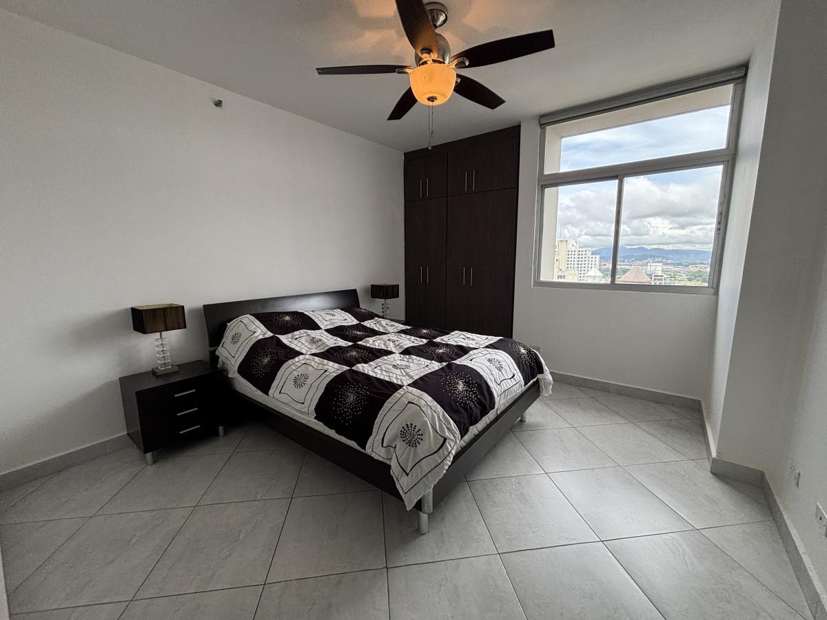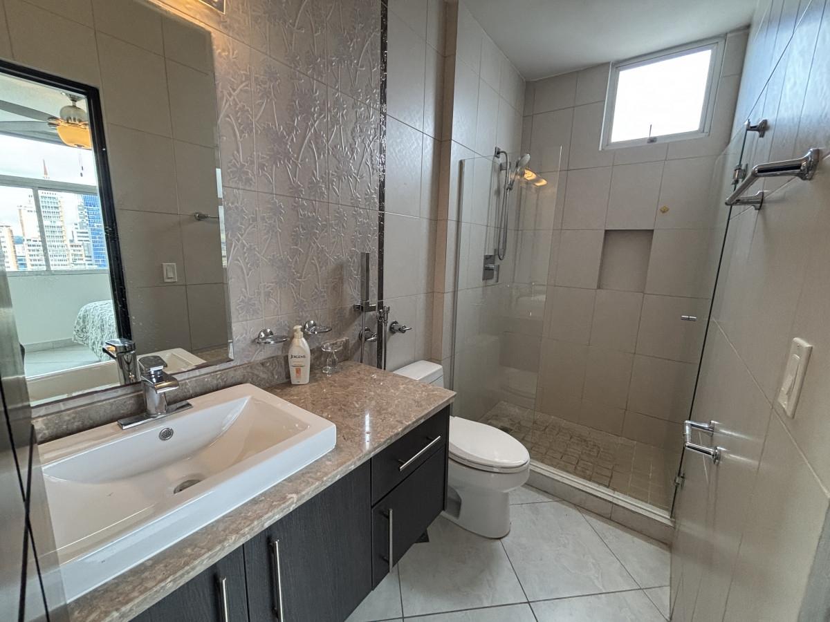 Se vende apartamento amoblado, tipo Junior Pent-house en Torre Luxor 100, El Cangrejo. Cuenta con tres especiosas recámaras, cada una con su baño, cuarto y baño de servicio, baño de visita y espectacular vista a ciudad. Los baños son amplios con finos y modernos acabados. El apartamento viene equipado con aires, cortinas, línea blanca (dos neveras), centro de lavado y lavaplatos. Adicionalmente, incluye bar con nevera para vinos y un hermoso mueble de madero hecho a la medida en el foyer del apartamento. La cocina es amplia, moderna e incluye desayunador. Luxor es reconocido como uno de los mejores y más exclusivos complejos de edificios de El Cangrejo. Las áreas sociales son amplias e incluyen piscina, jacuzzi, sauna, salas de juegos, gimnasio y juegos para niños. Los apartamentos de este tipo, cuentan con acceso a un segundo área social en la azotea del edificio con hermosas vistas, jacuzzi y espacio de bar abierto para fiestas.