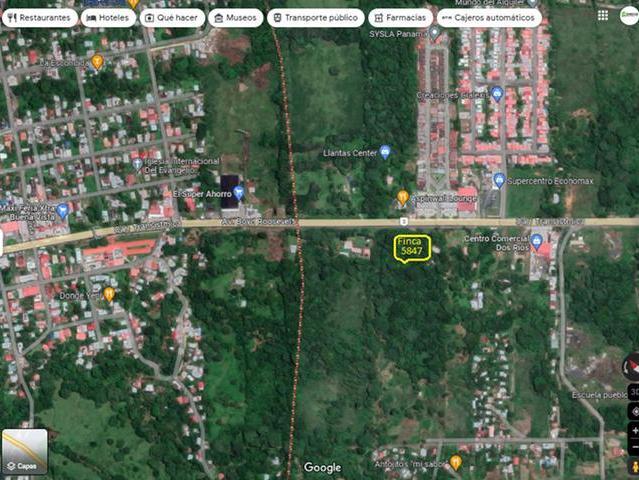 El globo del terreno esta ubicado sobre la carretera transistmica y presenta una forma geométrica rectangular con un frente de 100.00 metros lineales por la carretera transistmica y un fondo de 500.00 metros lineales, como punto de referencia esta a 800.00 metros lineales antes de la estación de policía de buena Vista.