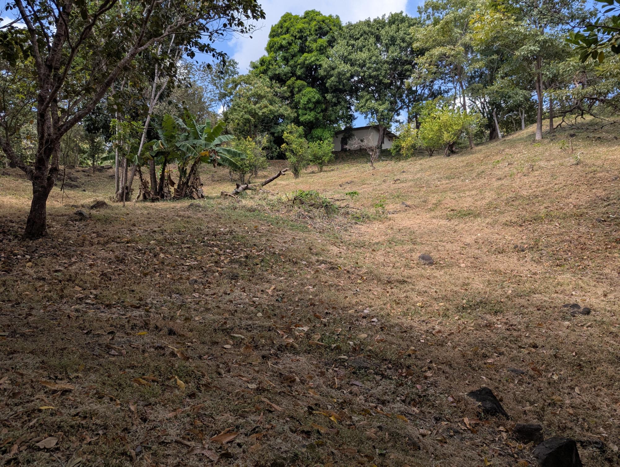 La propiedad consiste en un globo de terreno con una forma irregular y topografía variable, mantiene algunas áreas inclinadas y con ondulaciones. Se encuentra cubierto de grama natural, algunos árboles frutales y algunos árboles nativos del sector. El terreno se encuentra cercado con alambre de púas con estacas vivas y muertas.