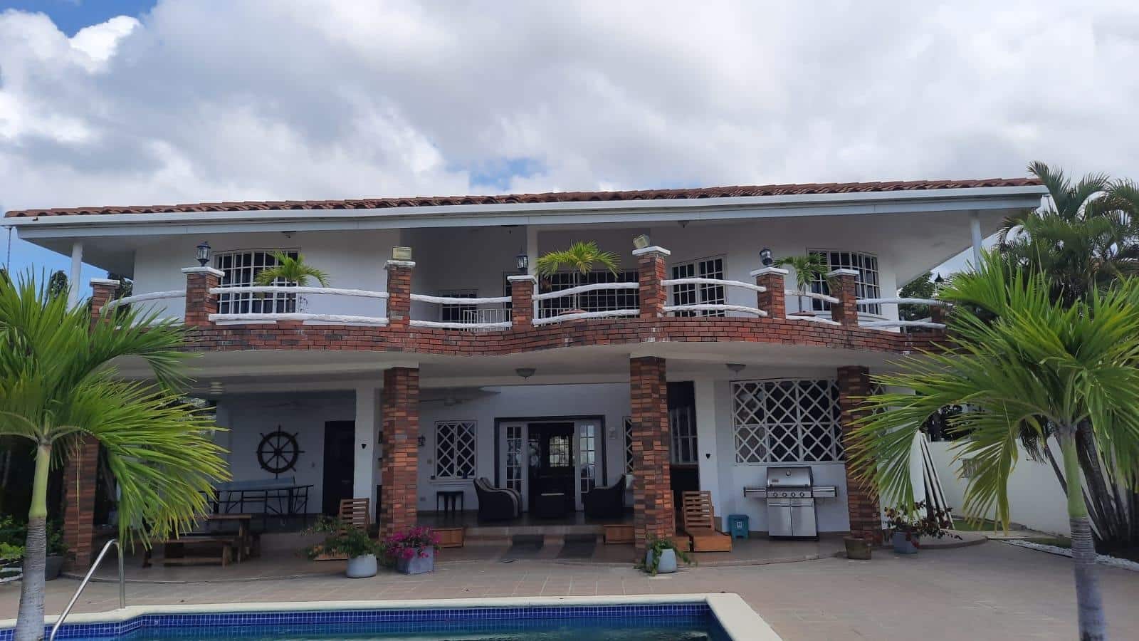 Ubicada privilegiadamente en la Riviera del Pacífico de Panamá, dentro del exclusivo complejo residencial Vista Mar Resort, esta elegante residencia de dos pisos presenta una oportunidad única tanto para inversión como para disfrute familiar. Características Generales Terraza No. 2, Vista Mar Resort, San Carlos, Panamá Estado: Excelente Distribución Planta Baja: Amplio recibidor Sala y comedor con acceso a terraza techada Cocina equipada con muebles de madera, desayunador y acabados de alta calidad Cuarto de lavado y cuarto de servicio con baño Baño de visitas Dormitorio de visitas con baño compartido Garaje techado con capacidad para 2 vehículos Planta Alta: Dormitorio principal con walk-in closet, baño privado y balcón con vista Dormitorio secundario con baño privado Lobby o área familiar Acabados y Detalles Constructivos Pisos de cerámica importada Cielorrasos de losa de concreto y gypsum Fachada con piedra decorativa y elementos de madera sólida Ventanas francesas corredizas con portones de hierro forjado Terraza y jardín privado ideal para el entretenimiento Ventajas del Proyecto Vista Mar Resort Acceso controlado con garita de seguridad Calles internas pavimentadas, con paisajismo y aceras peatonales Electricidad subterránea Áreas sociales: campo de golf, club de playa, marina, jardines, áreas de juegos infantiles, senderos ecológicos y Entorno exclusivo, seguro y de gran valor. Lista para ocupación inmediata. Esta propiedad representa una fusión de confort, exclusividad y una ubicación estratégica. Ideal para quienes buscan una casa vacacional de lujo o una inversión rentable en una de las zonas más prometedoras del mercado inmobiliario panameño. ¿Desea programar una visita o recibir más información? Estamos a su disposición para guiarle en cada paso del proceso.