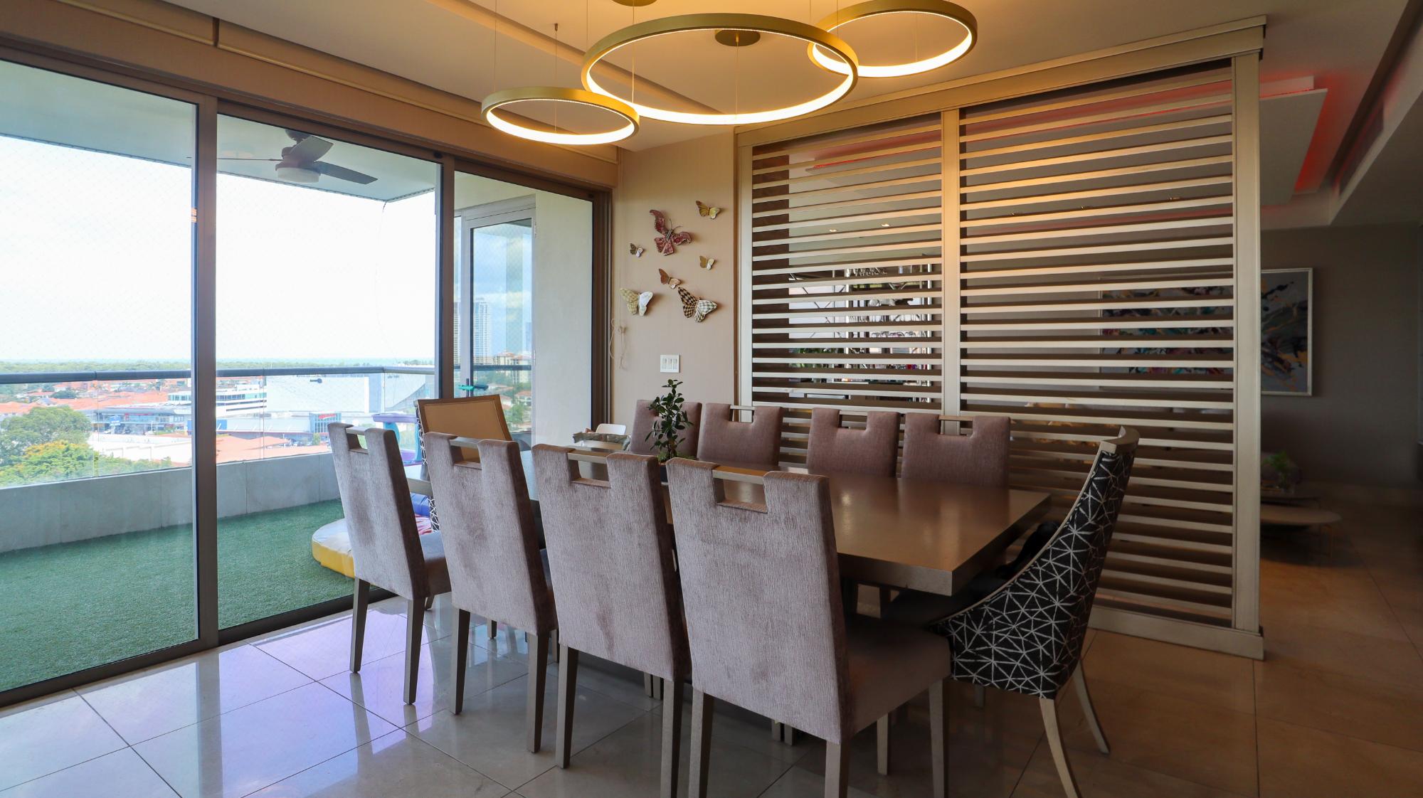 Exclusivo apartamento de 314 m² en el edificio Greengarden, ubicado en Santa María Golf & Country Club, que cuenta con 3 recámaras, cada una con su baño privado y walk-in closet en la principal, 3.5 baños incluyendo medio baño de visitas. Ofrece impresionantes vistas panorámicas al campo de golf, la playa y la ciudad. Su distribución incluye sala-comedor, cocina cerrada italiana con desayunador, den, sala familiar, terraza, área de lavandería, cuarto y baño de servicio. Entre sus acabados destacan pisos de mármol, puertas de madera importadas y ventanas de doble vidrio. El edificio dispone de amenidades como piscina, gimnasio, salón de fiestas, áreas de juegos para niños, cancha de fútbol, amplias áreas verdes, seguridad 24/7, planta eléctrica y tanque de agua de reserva. Adicionalmente, cuenta con 3 puestos de estacionamiento, depósito y extras como aires acondicionados, línea blanca, rollers y blackouts en todas las recámaras. Este apartamento combina lujo, comodidad y una ubicación privilegiada en una de las comunidades más exclusivas de Panamá.