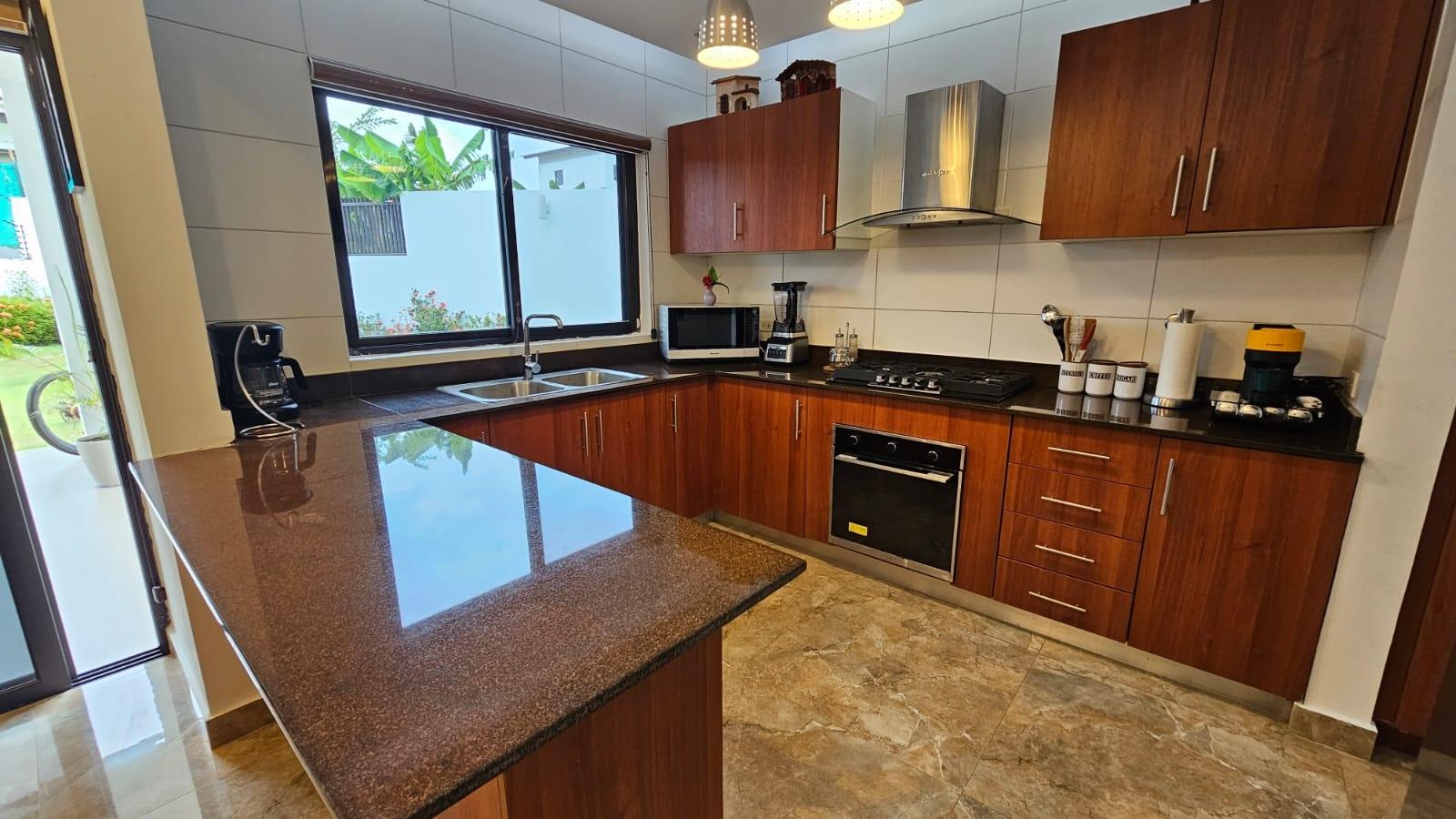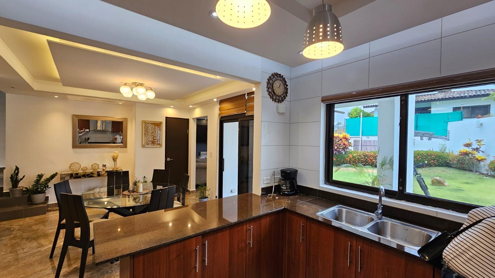 En Costa Verde, en la provincia de Panamá Oeste, se encuentra esta casa en venta. Con una ubicación privilegiada, en una zona tranquila y de rápido acceso a las principales vías de la ciudad, esta propiedad cuenta con un área de terreno de 564 M2 y una construcción de 203.30 M2, ofreciendo un amplio espacio para vivir cómodamente y disfrutar en familia. Esta hermosa casa cuenta con 3 amplias alcobas, cada una con su propio baño para mayor privacidad y comodidad. Además, dispone de dos garajes para estacionar sus vehículos de forma segura y protegida. En su interior, encontramos acabados de alta calidad y una distribución inteligente que aprovecha al máximo el espacio disponible. Contando con todas las comodidades modernas, incluyendo aire acondicionado para brindar un clima agradable en cualquier época del año, armarios empotrados para mantener sus pertenencias ordenadas. La cocina es un espacio amplio y moderno y una barra estilo americano que lo conecta con el area de comedor. Esta propiedad es perfecta para quienes tengan mascotas, ya que está adaptada para ellas y cuenta con amplias zonas verdes y parques cercanos para que puedan disfrutar y ejercitarse. Además, está ubicada en una urbanización cerrada con vigilancia las 24 horas del día, brindando seguridad y tranquilidad a sus residentes. En su exterior, esta casa cuenta con una confortable área social con barbacoa y parrilla, ideal para reuniones con amigos y familiares. También cuenta con una piscina para refrescarse en los días de calor y una terraza para disfrutar del aire libre. Y para aquellos que buscan mantenerse activos, cuenta con zonas deportivas donde podrán hacer ejercicio y mantenerse en forma. No pierda la oportunidad de adquirir esta propiedad de lujo, con acabados de primera, en una ubicación privilegiada y con todas las comodidades que pueda desear.