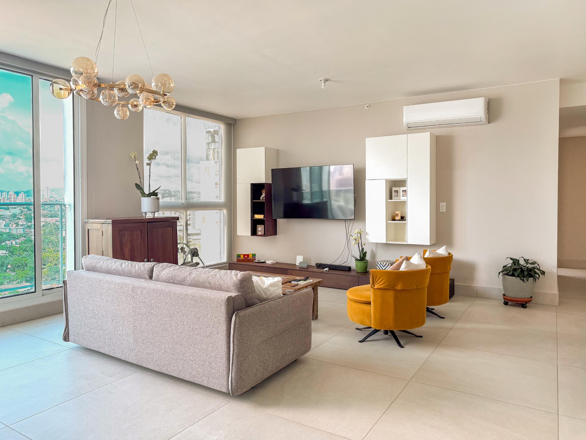 Hermoso apartamento en Coco del Mar – Alquiler o Venta Este moderno apartamento, casi nuevo y en excelente estado, ofrece una combinación perfecta de comodidad, ubicación y estilo. Puede alquilarse con o sin muebles, según la necesidad del cliente, o venderse si surge una oportunidad rápida. Cuenta con 3 recámaras, cada una con su baño, 1/2 baño de visita y cuarto y baño de servicio. Incluye 2 estacionamientos. Cuenta con una vista espectacular hacia la urbanización Loma Alegre y a Altos del Golf, lo que brinda una sensación de tranquilidad y amplitud. Su cocina abierta aporta luminosidad y un ambiente moderno ideal para disfrutar y compartir. Ubicado en Coco del Mar, sobre la Vía Cincuentenario, una de las zonas más céntricas y convenientes de la ciudad. A pocos minutos encontrarás colegios, supermercados, hospitales, centros comerciales, farmacias y una amplia oferta de restaurantes. Es una excelente opción para quienes buscan vivir o invertir en un área privilegiada, segura y altamente accesible.