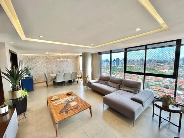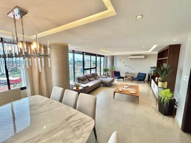 Disfruta vivir en uno de los mejores edificios con vista a la ciudad en Sky View! posee 183.5 m2 con 3 recámaras (principal con walking closet) , 2.5 baños, estudio, cuarto y baño de servicio, 3 estacionamientos, remodelado con acabados finos y moderno. Incluye línea blanca parcial como estufa y aires. Area social posee piscina techada, área de bbq, área de eventos, salón de juego, seguridad 24/7, 2 tanques de agua, planta eléctrica parcial. Mantenimiento 4326.63 que incluye gas, impuesto anual de $1,068. Edificio ubicado encalle sin salida para privacidad y tranquilidad ideal