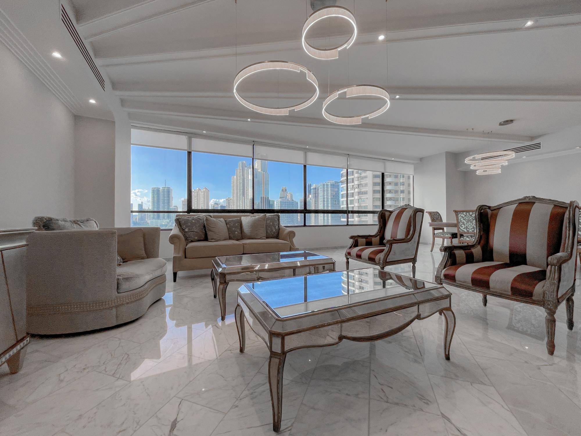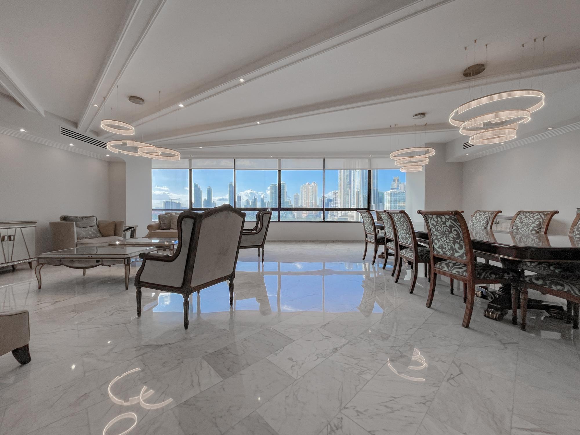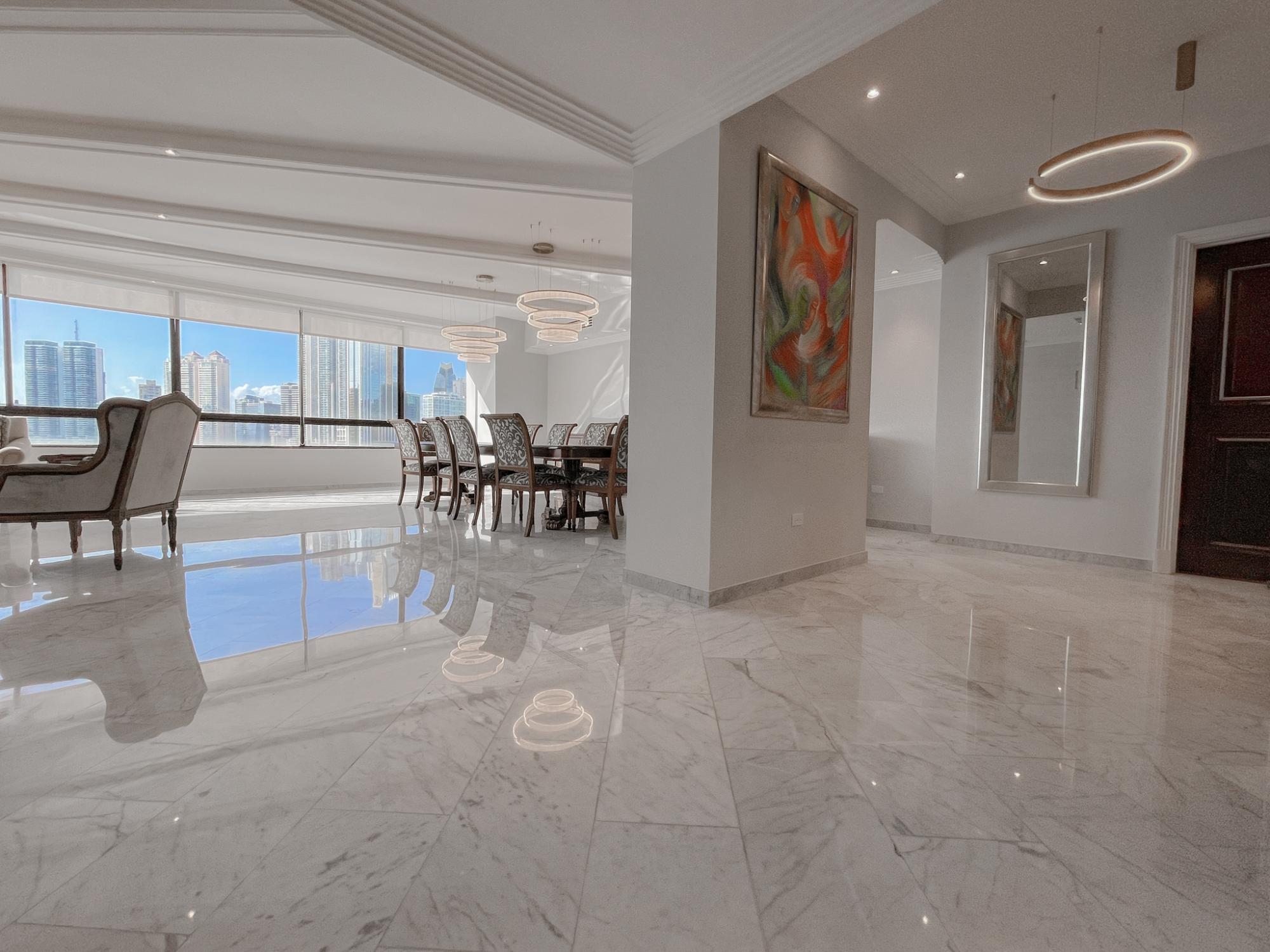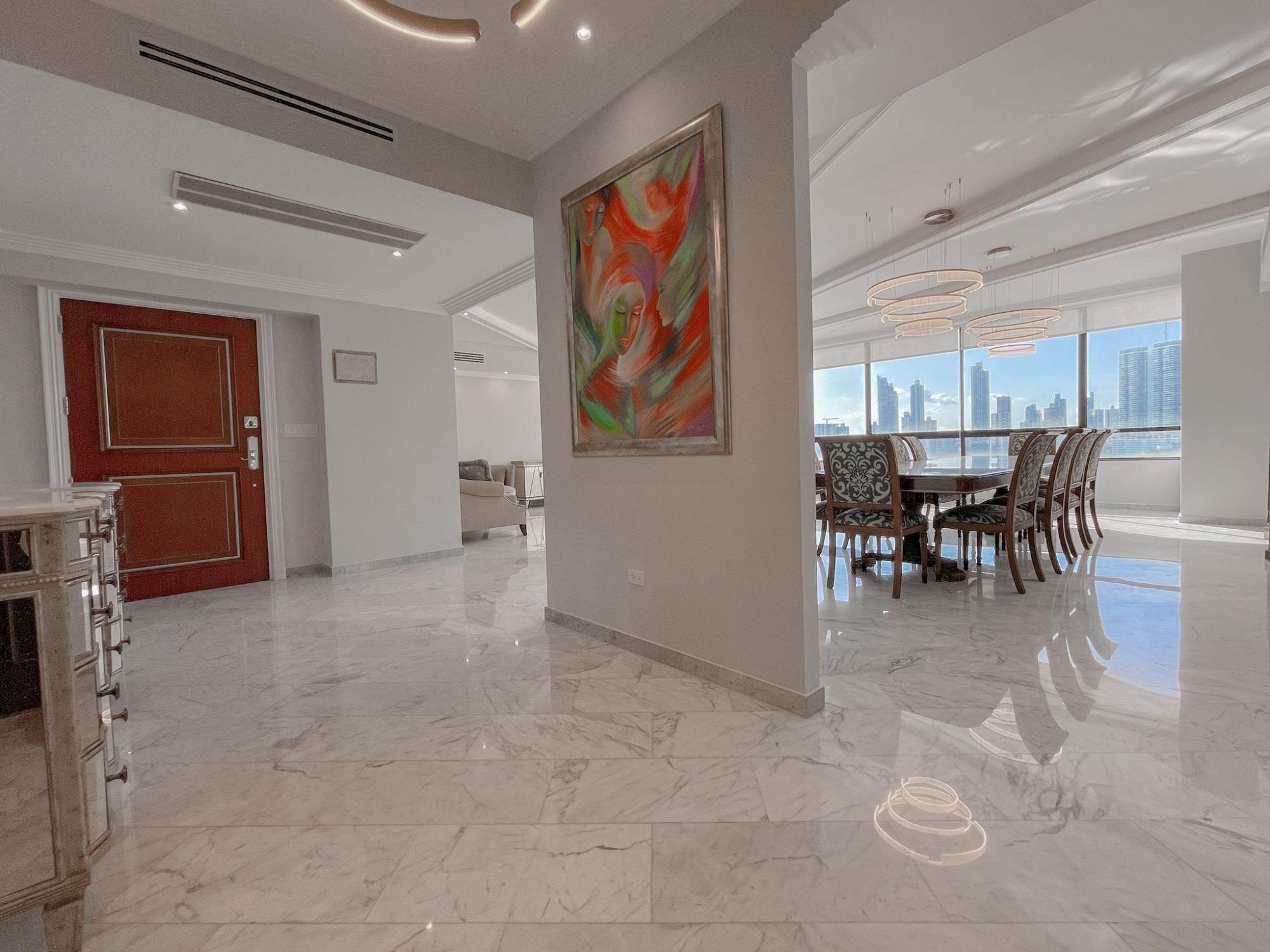 Exclusivo apartamento en PH Villa Marina – Punta Paitilla Oportunidad en uno de los residenciales más exclusivos de Punta Paitilla. Con 337.94 m2, este apartamento ofrece una amplia sala-comedor con vista al mar, den familiar, baño de visitas, tres recámaras con walk-in closet y baño privado, cocina independiente con desayunador, espaciosa lavandería, baño de servicio y dos estacionamientos. El PH cuenta con un elegante lobby de doble altura, dos ascensores principales de alta velocidad y un ascensor de servicio. Su área social remodelada incluye piscina para adultos y niños, salón de eventos, gimnasio totalmente equipado, cancha de basketball, cancha de squash, salón de aeróbicos y sauna. Vive con exclusividad, comodidad y una vista espectacular. Contáctanos para más información o para agendar una visita.
