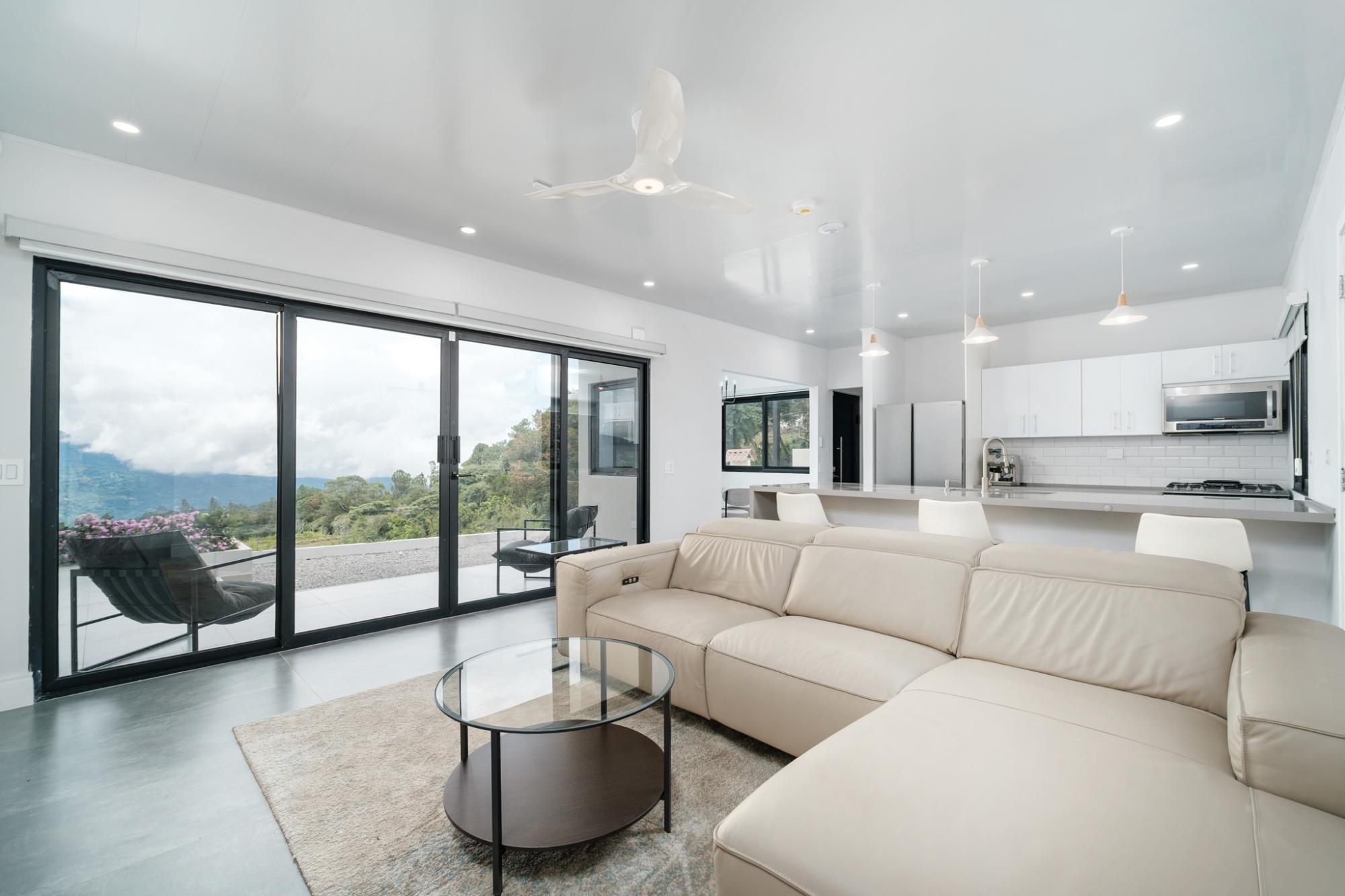 Disfrute de impresionantes vistas panorámicas a las montañas desde esta casa inteligente de 2024, diseñada con un hermoso diseño, ubicada a solo 10 minutos del centro de Boquete, en el codiciado barrio de Cerro Verde. Ubicada en un terreno completamente ajardinado con árboles frutales, incluso hay espacio para añadir una casita de invitados. Las puertas corredizas francesas conducen a un patio delantero con azulejos, creando una perfecta integración entre el interior y el exterior. El diseño abierto incluye una cocina de chef con encimeras de Silestone, una península con borde de cascada y un acogedor comedor rodeado de ventanales. La suite principal incluye ducha de lluvia, armarios dobles y acceso directo a una terraza con vistas al amanecer. Las características de la casa inteligente incluyen internet Starlink, generador de emergencia, wifi por cable, cámaras de seguridad y persianas con control remoto. Características adicionales: lavadora/secadora Samsung, despensa, patio trasero cercado, sistema de riego, estacionamiento cubierto y dos cisternas con filtro UV. Lista para mudarse, moderna y diseñada para el estilo de vida de Boquete.